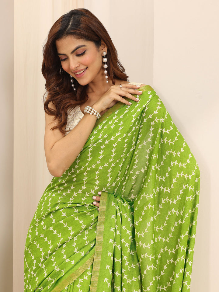 Our Lime Green printed Georgette saree features captivating Floral Prints. This charming saree is perfect for Semi Festive occasions.