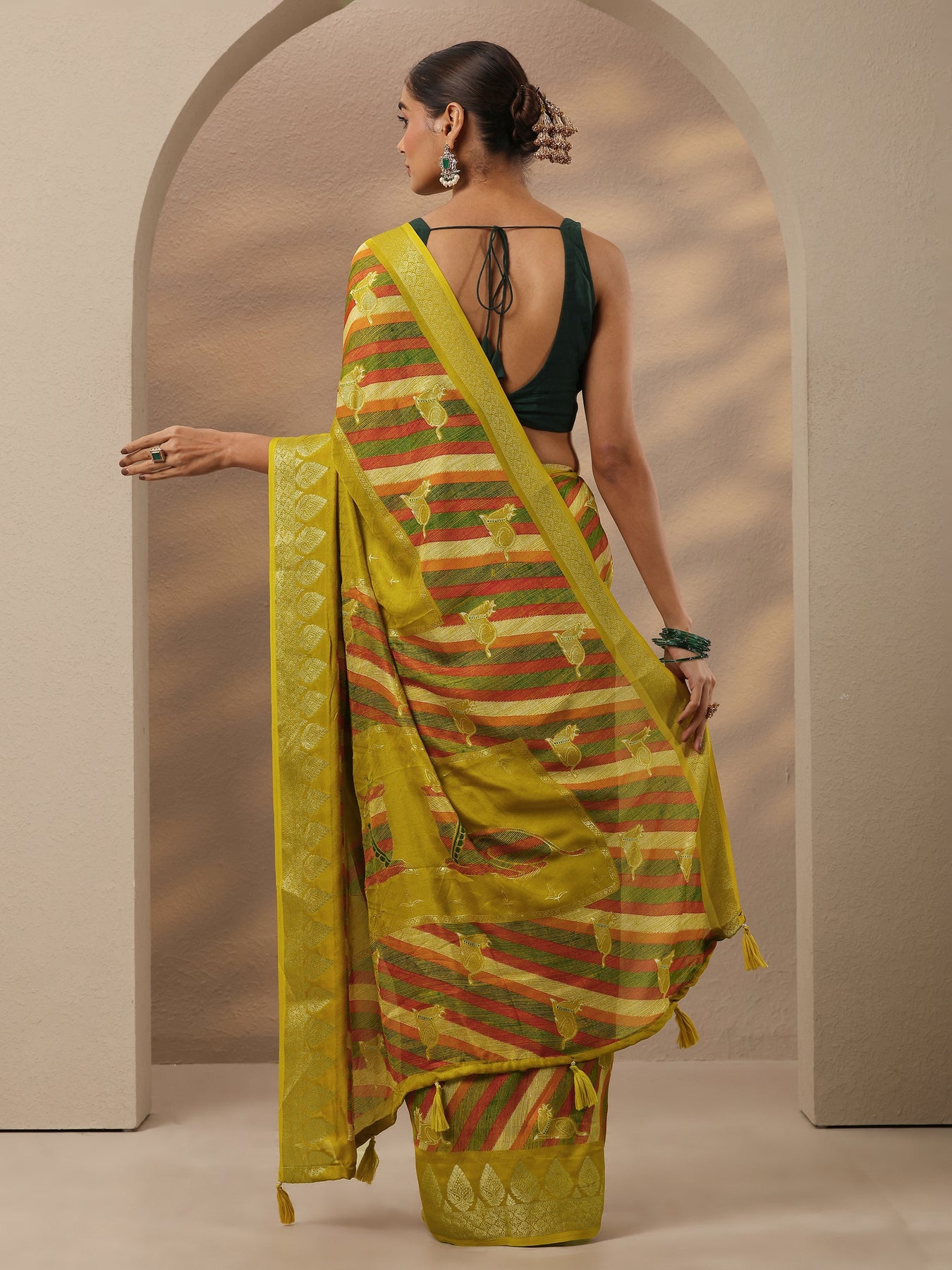 Our Lime Green Printed Silk Blend Saree Features Captivating Ethnic Motif. Complemented With An Unstitched Blouse Piece. This Charming Saree Is Perfect For Festive Occasions.