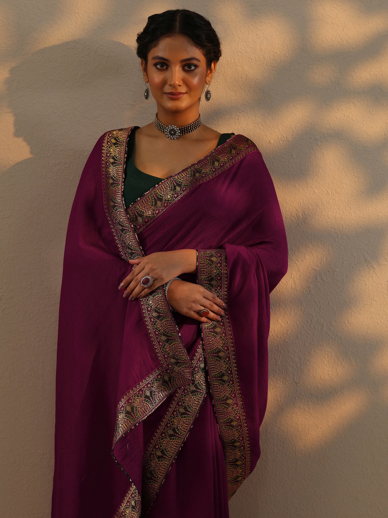 Magenta Solid Silk blend Saree With Unstitched Blouse Piece