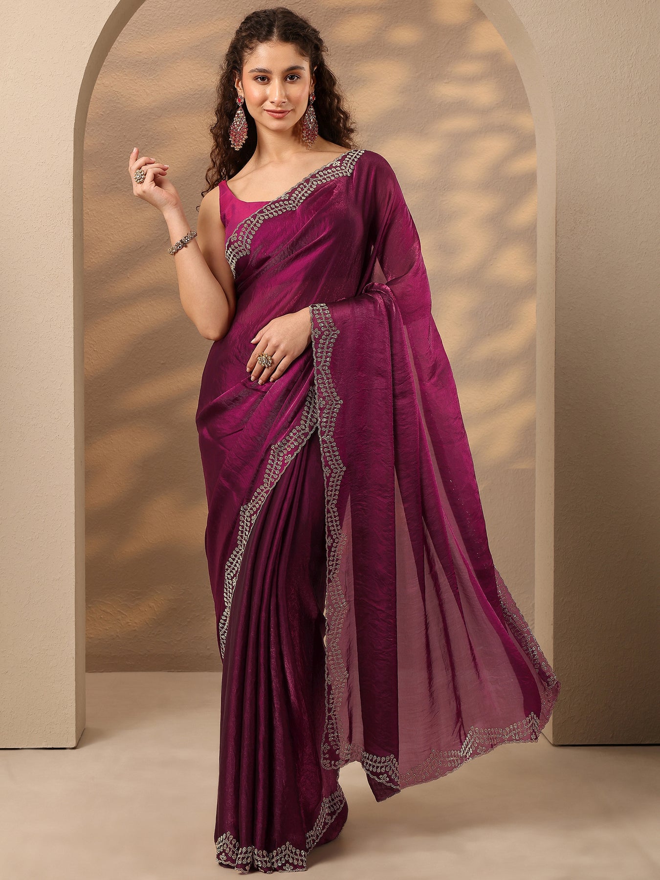 Our Magenta Solid Sarees Silk Blend Saree Features Captivating Solid. Complemented With An Unstitched Blouse Piece. This Charming Saree Is Perfect For Festive Occasions.
