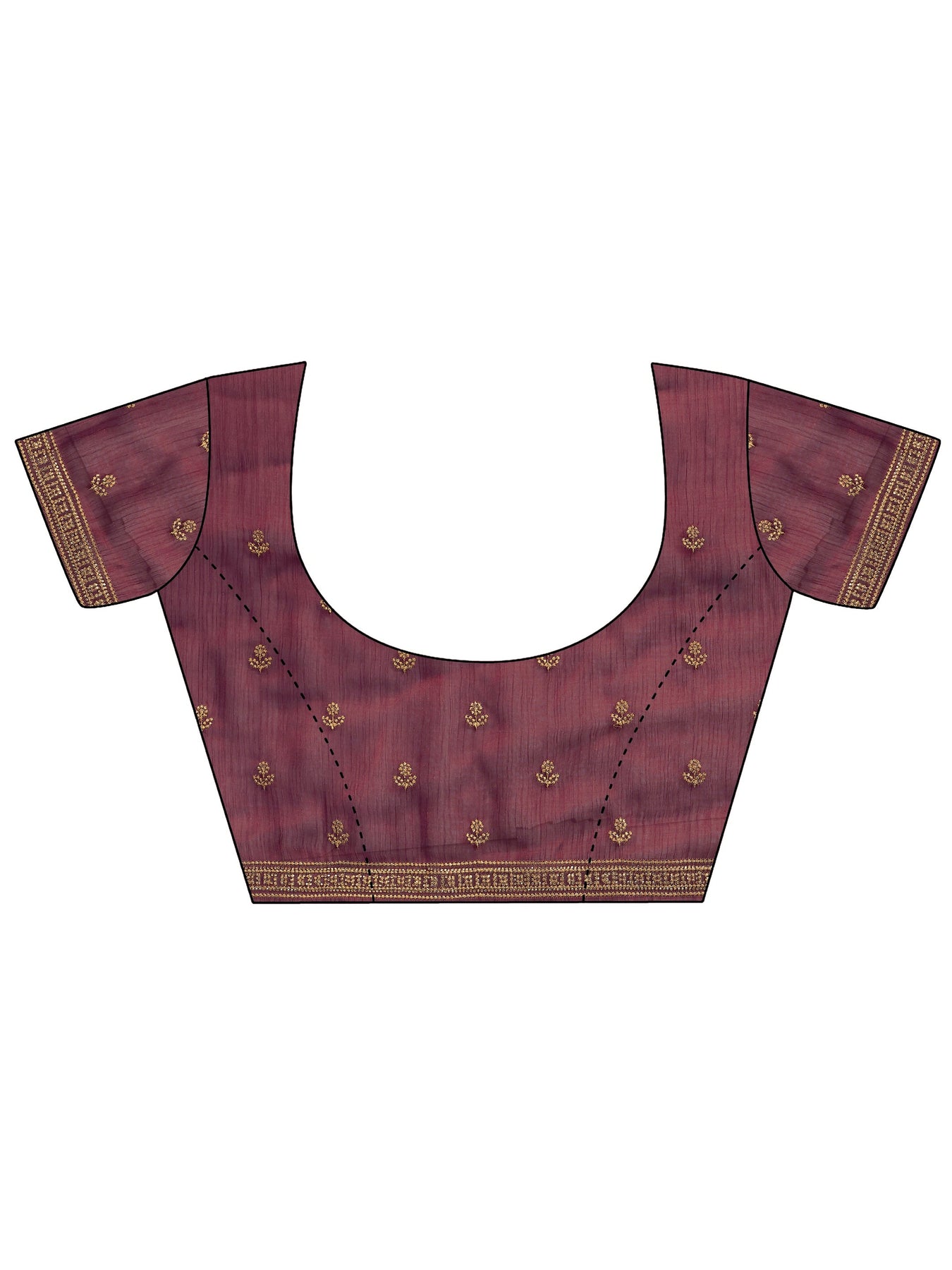 Maroon Embellished Silk Blend Saree With Unstitched Blouse Piece