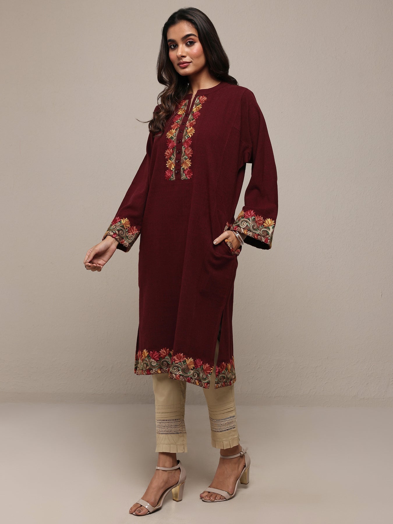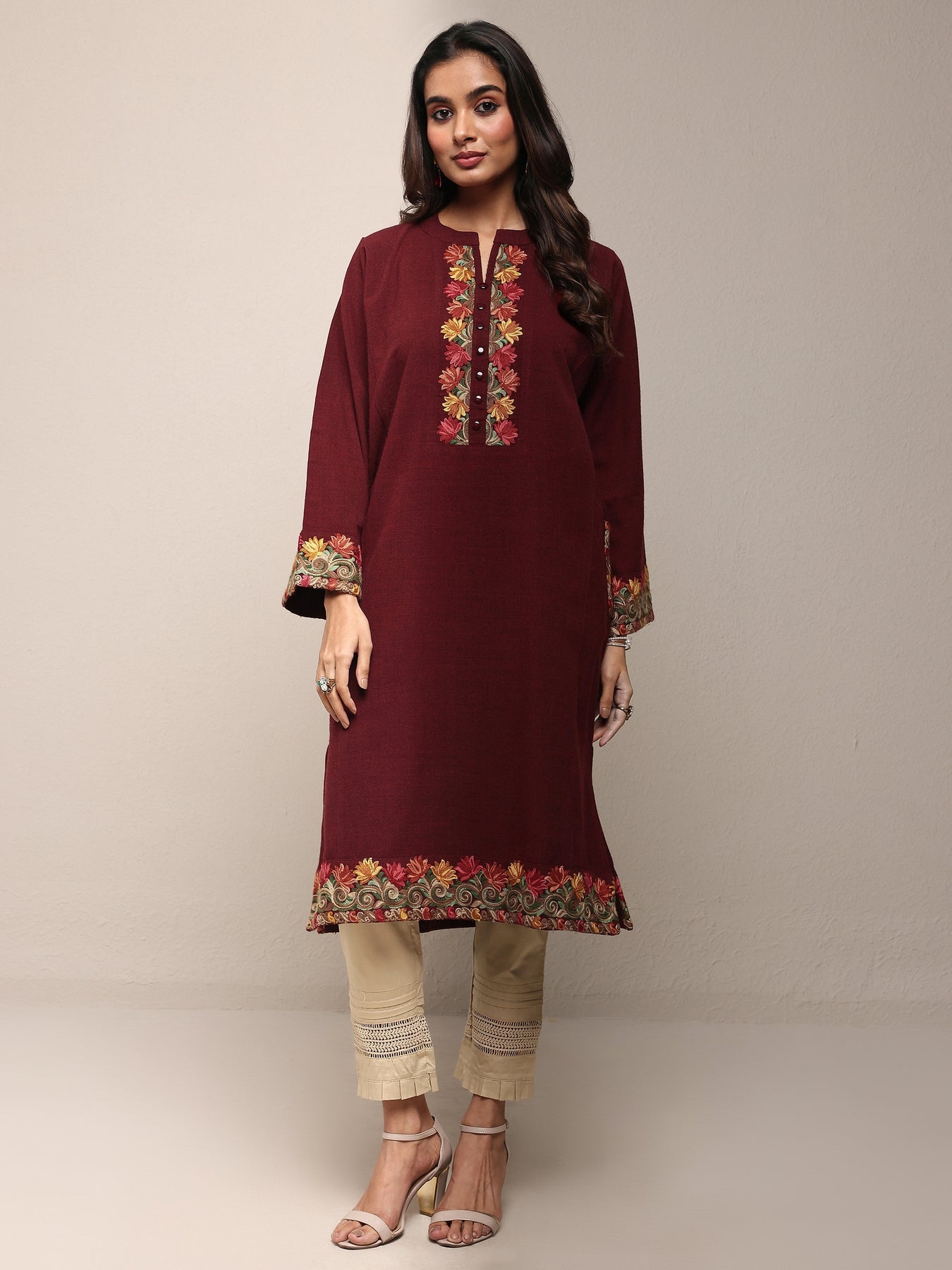 {"id":8549905432726,"title":"Maroon Floral Embroidered Wool Straight Kurta","handle":"maroon-floral-embroidered-wool-straight-kurta-58363w","description":"\u003cp\u003eOur 1-piece maroon wool straight-fit kurta features a mandarin collar neckline, regular sleeves, and statement Yoke. Adorned with floral embroidered, this style is perfect for dark festive occasions.\u003c\/p\u003e","published_at":"2026-01-06T16:40:51+05:30","created_at":"2025-11-20T21:44:57+05:30","vendor":"Libas","type":"All Products","tags":["58363W","AW'25","AW25 KRT","AW25 KURTAS","Calf Length","Collar Dresses","collar kurtis","Embroidered","Embroidered Kurtis","EXCLA","Floral","KRT","Kurta","KURTAS","Long Sleeves","Mandarin Collar","Maroon","Maroon Kurtis","New Launch","NEWARRIVALSAW25","NEWARRIVALSSS25","Party Wear Kurtas","Party Wear Kurtis","Straight","Straight Kurtis","WINTERWEAR25","wool","Wool Kurtas","Woolen Kurtas"],"price":261900,"price_min":261900,"price_max":261900,"available":false,"price_varies":false,"compare_at_price":399900,"compare_at_price_min":399900,"compare_at_price_max":399900,"compare_at_price_varies":false,"variants":[{"id":45855795871894,"title":"S","option1":"S","option2":null,"option3":null,"sku":"58363W-S","requires_shipping":true,"taxable":true,"featured_image":{"id":41078197649558,"product_id":8549905432726,"position":3,"created_at":"2026-01-06T16:40:44+05:30","updated_at":"2026-01-06T16:40:53+05:30","alt":null,"width":2160,"height":2880,"src":"\/\/www.libas.in\/cdn\/shop\/files\/58363_1.jpg?v=1767697853","variant_ids":[45855795871894,45855795904662,45855795937430,45855795970198,45855796002966]},"available":false,"name":"Maroon Floral Embroidered Wool Straight Kurta - S","public_title":"S","options":["S"],"price":261900,"weight":580,"compare_at_price":399900,"inventory_management":"shopify","barcode":"8909076905900","featured_media":{"alt":null,"id":31930789822614,"position":3,"preview_image":{"aspect_ratio":0.75,"height":2880,"width":2160,"src":"\/\/www.libas.in\/cdn\/shop\/files\/58363_1.jpg?v=1767697853"}},"requires_selling_plan":false,"selling_plan_allocations":[],"quantity_rule":{"min":1,"max":null,"increment":1}},{"id":45855795904662,"title":"M","option1":"M","option2":null,"option3":null,"sku":"58363W-M","requires_shipping":true,"taxable":true,"featured_image":{"id":41078197649558,"product_id":8549905432726,"position":3,"created_at":"2026-01-06T16:40:44+05:30","updated_at":"2026-01-06T16:40:53+05:30","alt":null,"width":2160,"height":2880,"src":"\/\/www.libas.in\/cdn\/shop\/files\/58363_1.jpg?v=1767697853","variant_ids":[45855795871894,45855795904662,45855795937430,45855795970198,45855796002966]},"available":false,"name":"Maroon Floral Embroidered Wool Straight Kurta - M","public_title":"M","options":["M"],"price":261900,"weight":580,"compare_at_price":399900,"inventory_management":"shopify","barcode":"8909076905917","featured_media":{"alt":null,"id":31930789822614,"position":3,"preview_image":{"aspect_ratio":0.75,"height":2880,"width":2160,"src":"\/\/www.libas.in\/cdn\/shop\/files\/58363_1.jpg?v=1767697853"}},"requires_selling_plan":false,"selling_plan_allocations":[],"quantity_rule":{"min":1,"max":null,"increment":1}},{"id":45855795937430,"title":"L","option1":"L","option2":null,"option3":null,"sku":"58363W-L","requires_shipping":true,"taxable":true,"featured_image":{"id":41078197649558,"product_id":8549905432726,"position":3,"created_at":"2026-01-06T16:40:44+05:30","updated_at":"2026-01-06T16:40:53+05:30","alt":null,"width":2160,"height":2880,"src":"\/\/www.libas.in\/cdn\/shop\/files\/58363_1.jpg?v=1767697853","variant_ids":[45855795871894,45855795904662,45855795937430,45855795970198,45855796002966]},"available":false,"name":"Maroon Floral Embroidered Wool Straight Kurta - L","public_title":"L","options":["L"],"price":261900,"weight":580,"compare_at_price":399900,"inventory_management":"shopify","barcode":"8909076905924","featured_media":{"alt":null,"id":31930789822614,"position":3,"preview_image":{"aspect_ratio":0.75,"height":2880,"width":2160,"src":"\/\/www.libas.in\/cdn\/shop\/files\/58363_1.jpg?v=1767697853"}},"requires_selling_plan":false,"selling_plan_allocations":[],"quantity_rule":{"min":1,"max":null,"increment":1}},{"id":45855795970198,"title":"XL","option1":"XL","option2":null,"option3":null,"sku":"58363W-XL","requires_shipping":true,"taxable":true,"featured_image":{"id":41078197649558,"product_id":8549905432726,"position":3,"created_at":"2026-01-06T16:40:44+05:30","updated_at":"2026-01-06T16:40:53+05:30","alt":null,"width":2160,"height":2880,"src":"\/\/www.libas.in\/cdn\/shop\/files\/58363_1.jpg?v=1767697853","variant_ids":[45855795871894,45855795904662,45855795937430,45855795970198,45855796002966]},"available":false,"name":"Maroon Floral Embroidered Wool Straight Kurta - XL","public_title":"XL","options":["XL"],"price":261900,"weight":580,"compare_at_price":399900,"inventory_management":"shopify","barcode":"8909076905931","featured_media":{"alt":null,"id":31930789822614,"position":3,"preview_image":{"aspect_ratio":0.75,"height":2880,"width":2160,"src":"\/\/www.libas.in\/cdn\/shop\/files\/58363_1.jpg?v=1767697853"}},"requires_selling_plan":false,"selling_plan_allocations":[],"quantity_rule":{"min":1,"max":null,"increment":1}},{"id":45855796002966,"title":"XXL","option1":"XXL","option2":null,"option3":null,"sku":"58363W-XXL","requires_shipping":true,"taxable":true,"featured_image":{"id":41078197649558,"product_id":8549905432726,"position":3,"created_at":"2026-01-06T16:40:44+05:30","updated_at":"2026-01-06T16:40:53+05:30","alt":null,"width":2160,"height":2880,"src":"\/\/www.libas.in\/cdn\/shop\/files\/58363_1.jpg?v=1767697853","variant_ids":[45855795871894,45855795904662,45855795937430,45855795970198,45855796002966]},"available":false,"name":"Maroon Floral Embroidered Wool Straight Kurta - XXL","public_title":"XXL","options":["XXL"],"price":261900,"weight":580,"compare_at_price":399900,"inventory_management":"shopify","barcode":"8909076905948","featured_media":{"alt":nu