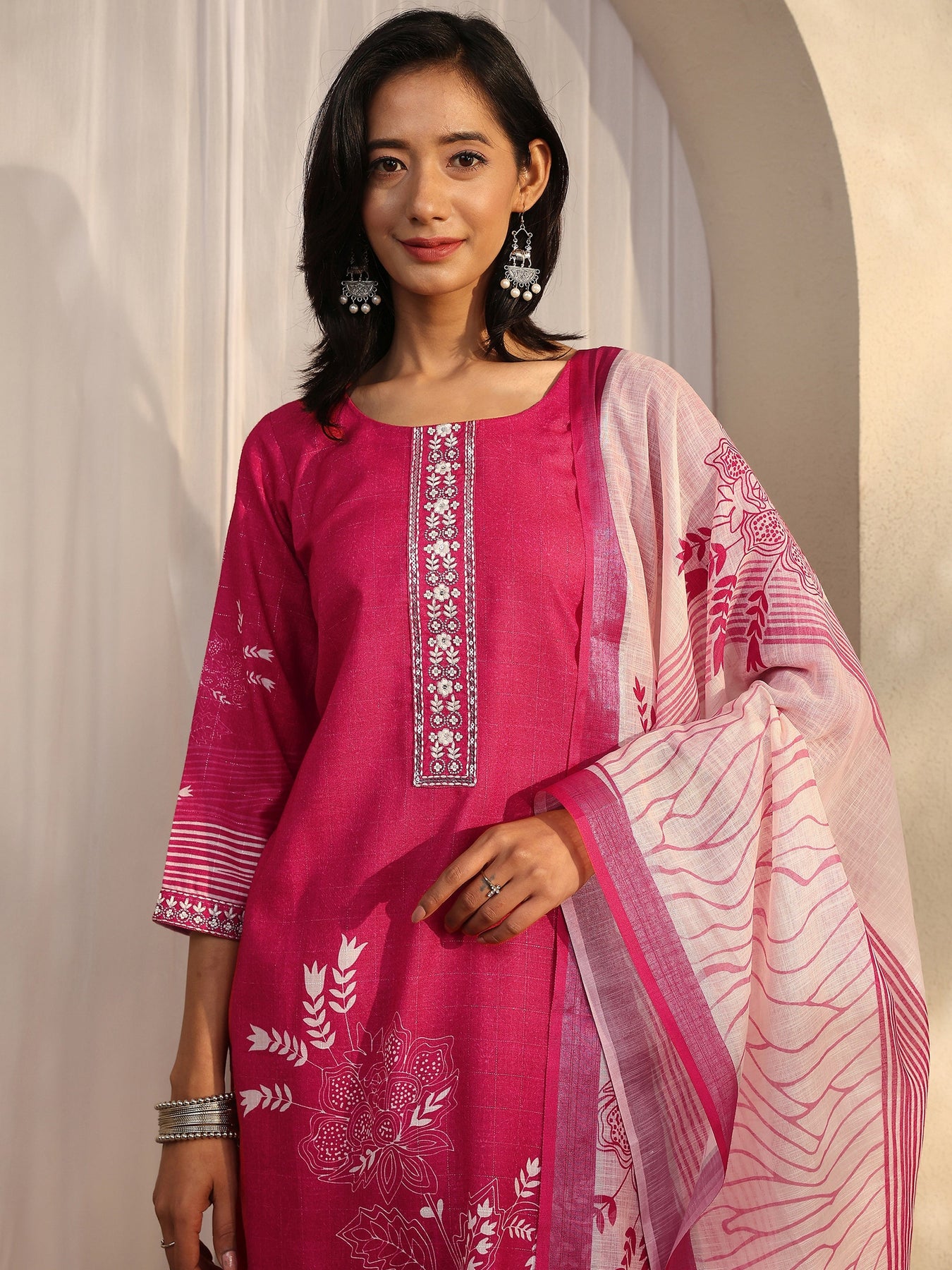 Maroon Printed Linen Straight Suit Set With Dupatta