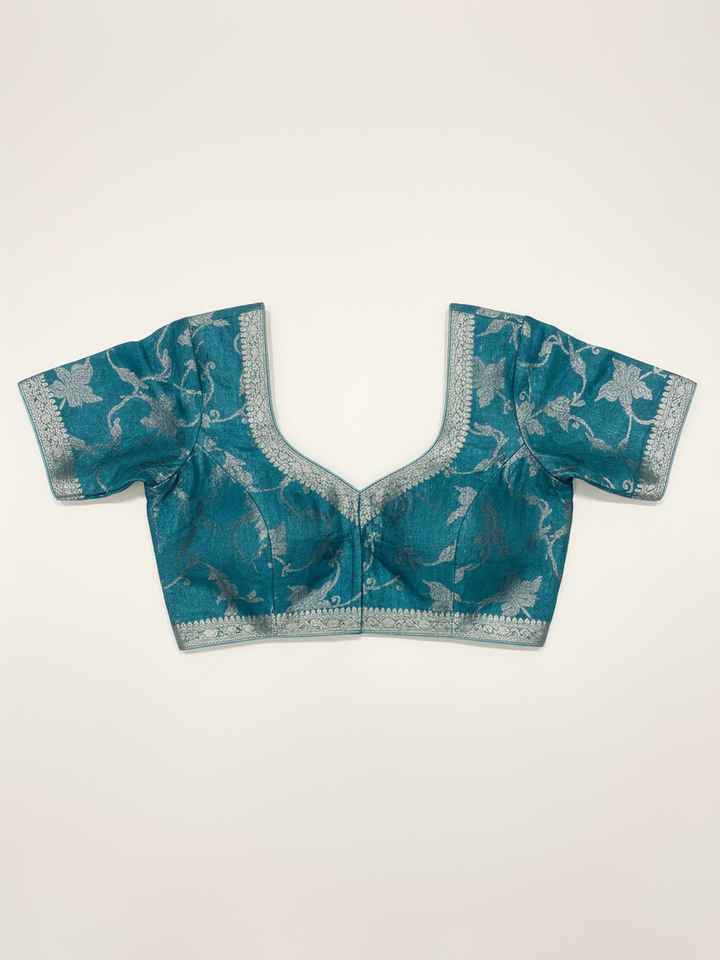 Maroon Printed Silk Blend Saree With Unstitched Blouse Piece