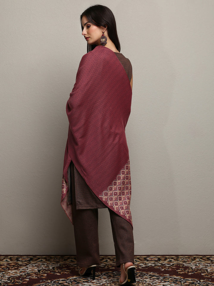 Maroon Woven Design Wool Women'S Shawl