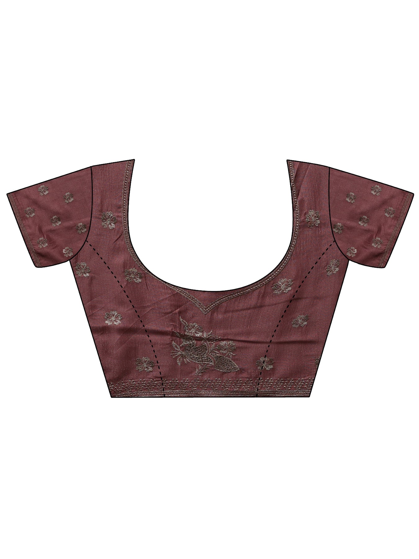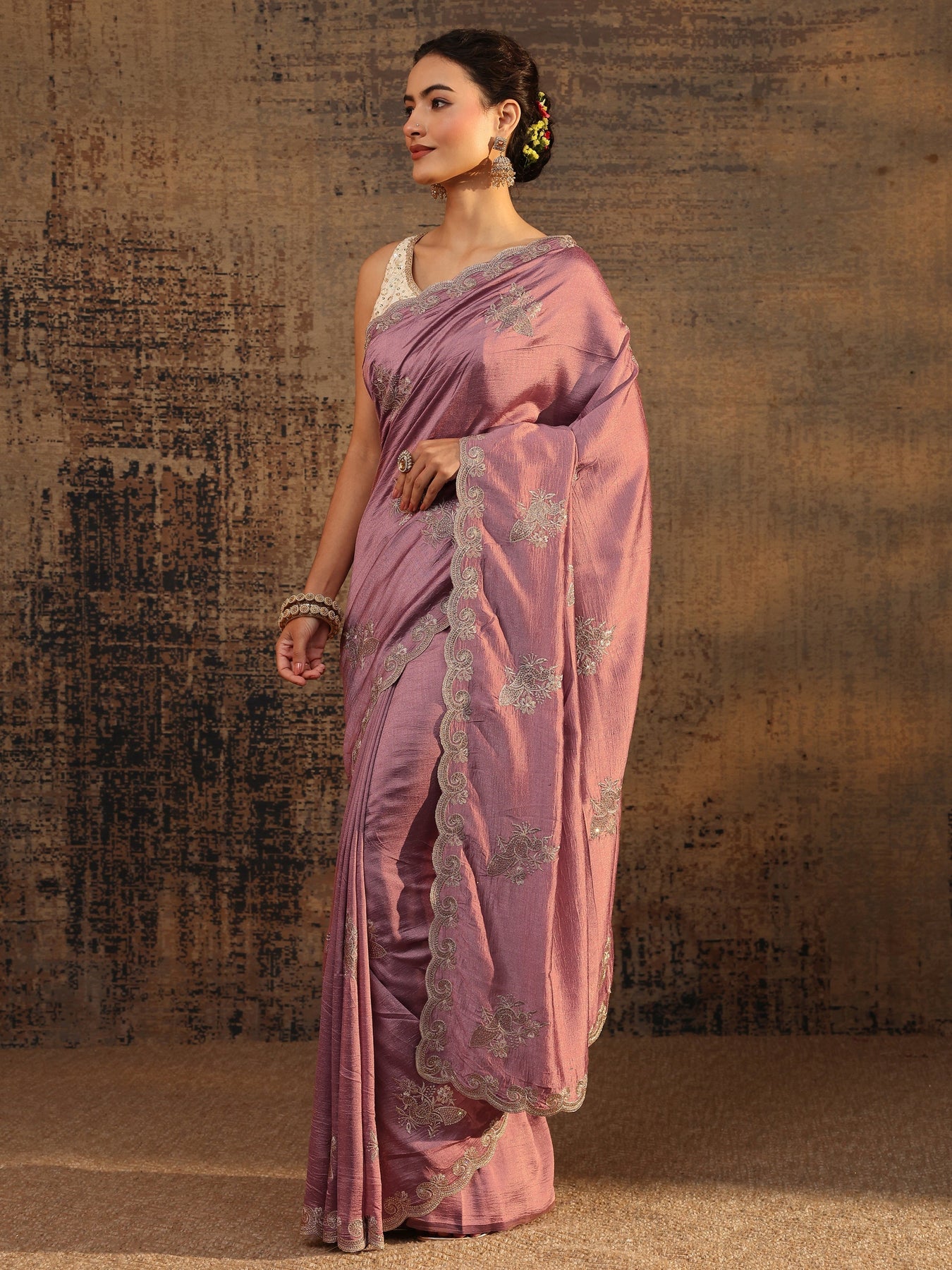 Mauve Floral Embroidered Silk Blend Saree With Unstitched Blouse Piece