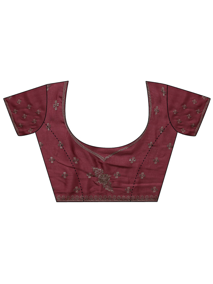 Mauve Floral Embroidered Silk Blend Saree With Unstitched Blouse Piece