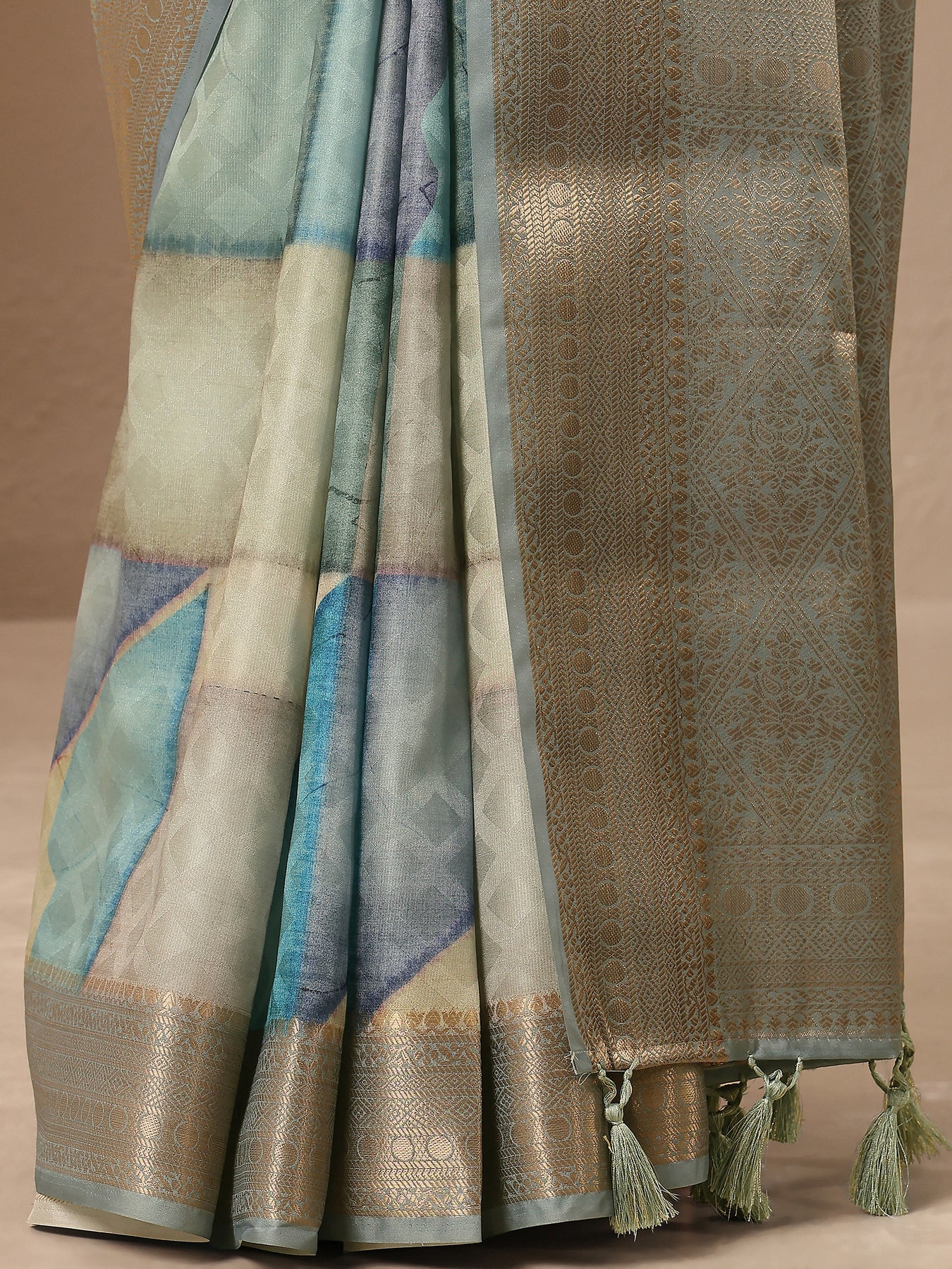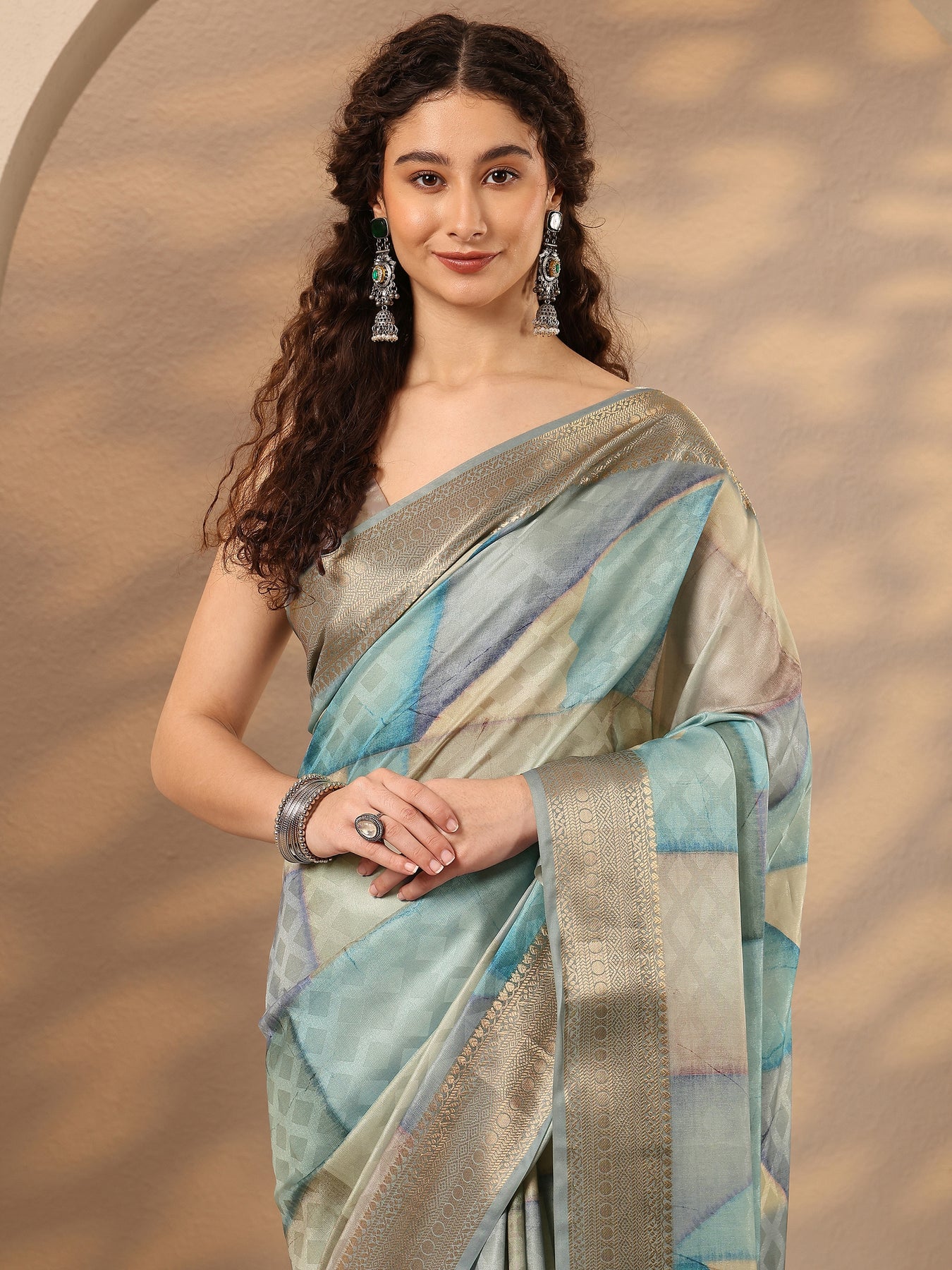 Our Multi Printed Silk Blend Saree Features Captivating Geometric. Complemented With An Unstitched Blouse Piece. This Charming Saree Is Perfect For Festive Occasions.