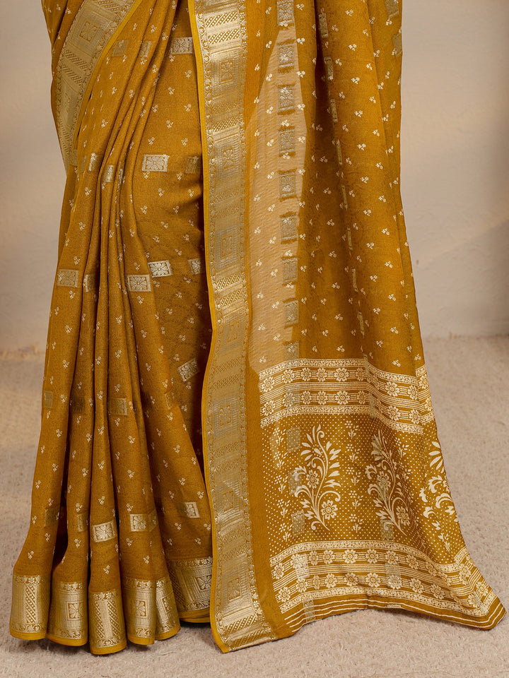 Mustard Ethnic Woven Design Silk Blend Saree With Unstitched Blouse Pi