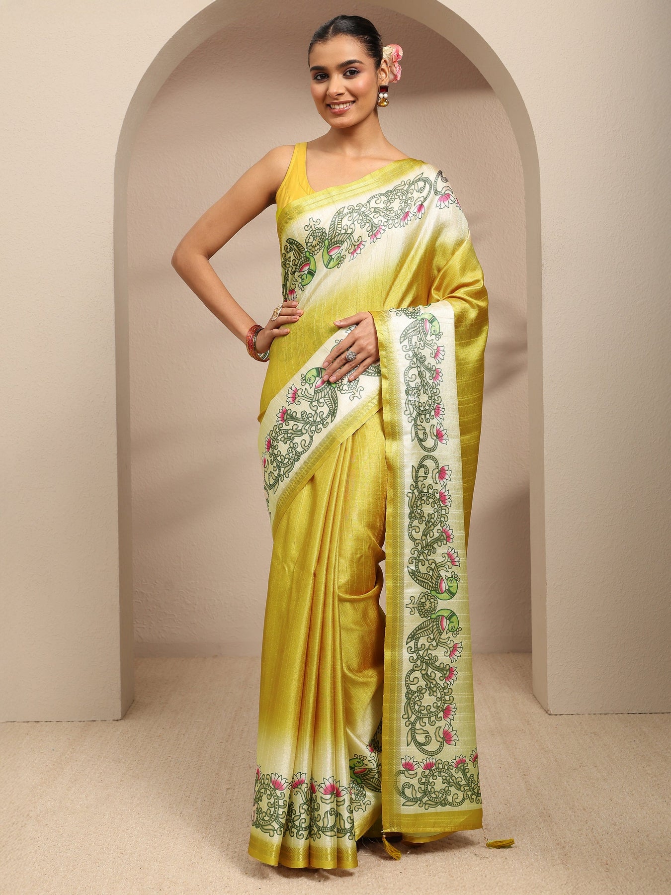 Mustard Ombre Solid Silk Blend Saree With Unstitched Blouse Piece