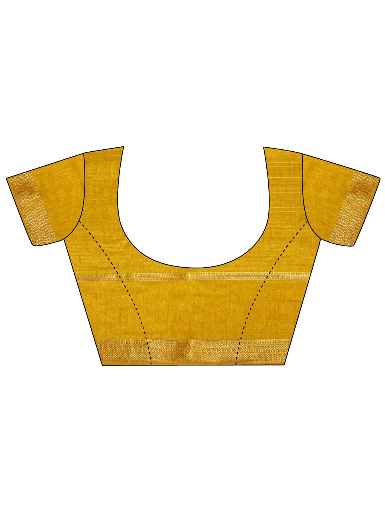 Our mustard silk-blend saree features a rich, textured finish adorned with elegant gold zari woven motifs and a traditional paisley-patterned border. Complemented with a unstitched blouse, this graceful saree is perfect for festive occasions and traditional celebrations.