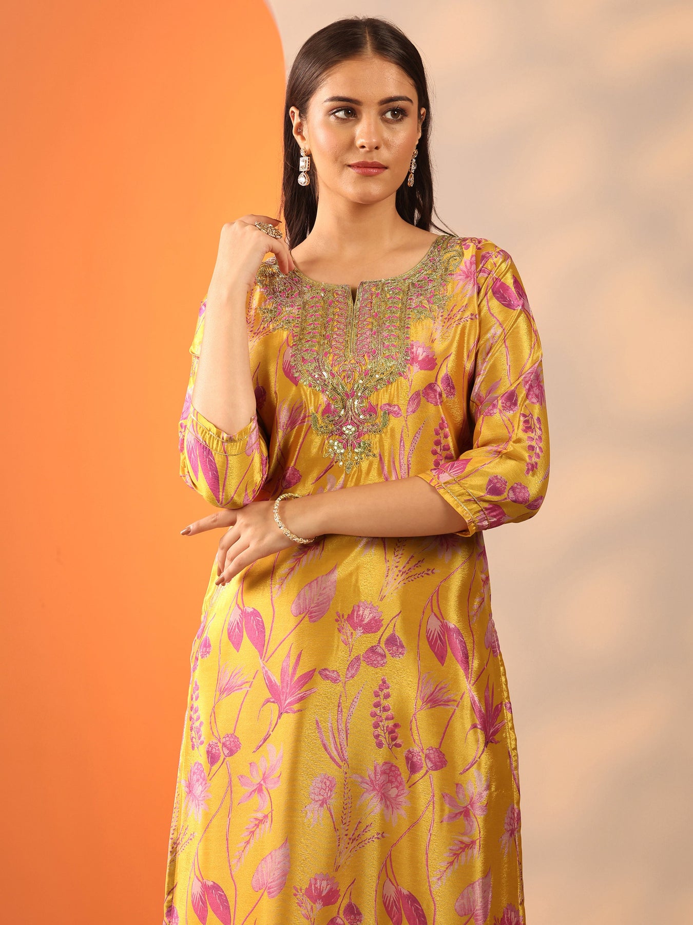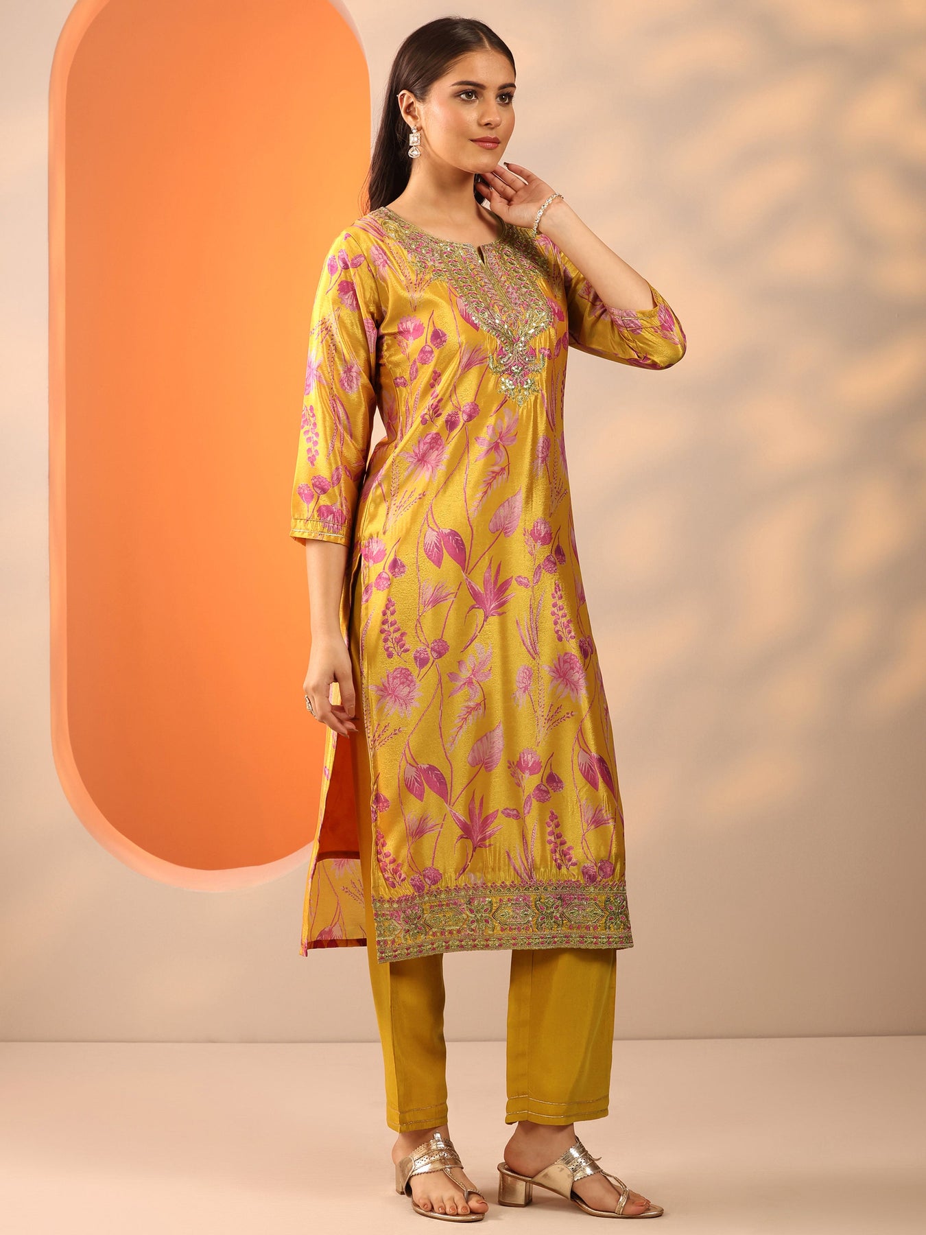 Mustard Printed Chinon Straight Suit Set With Dupatta