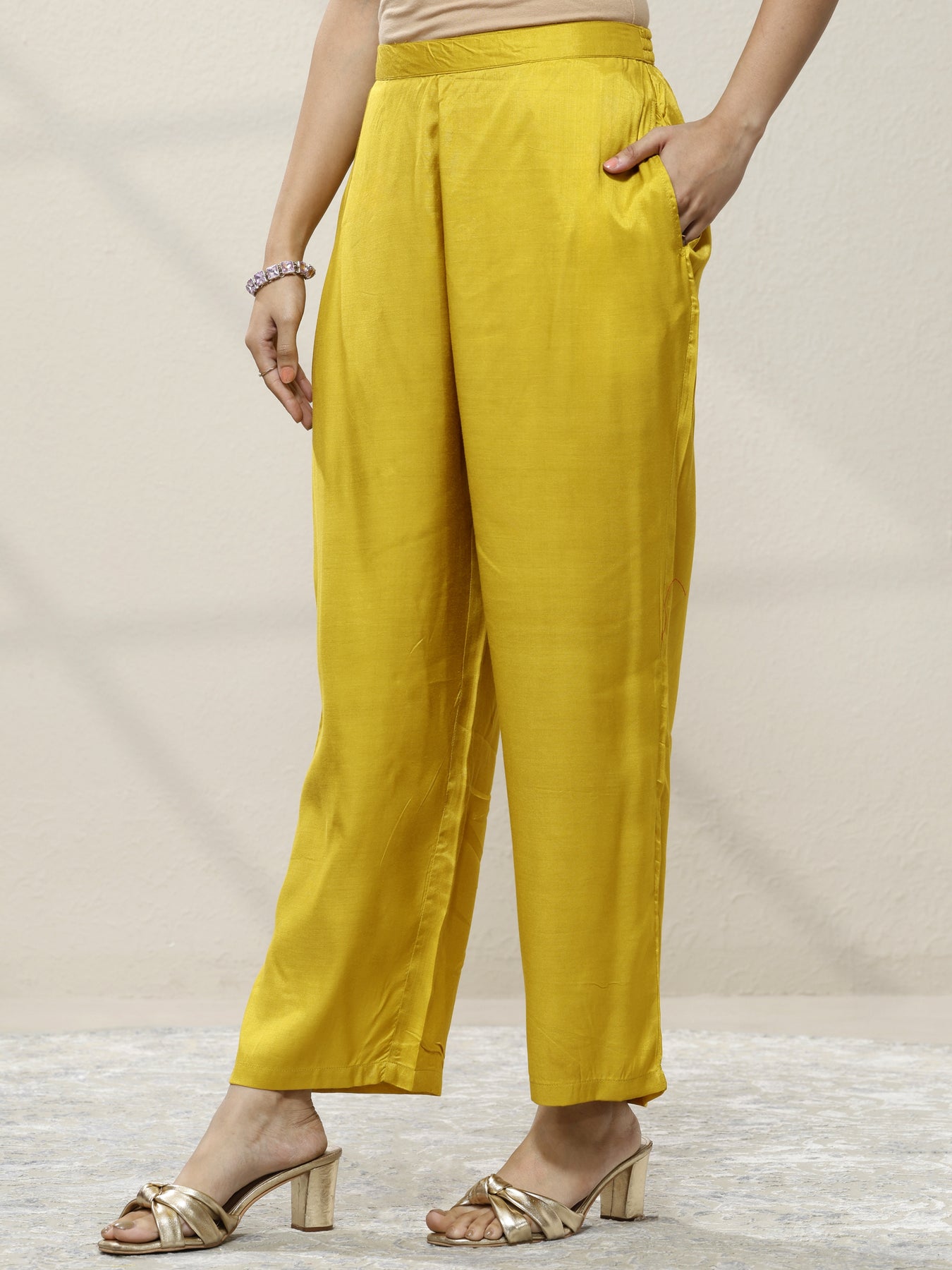 Our 3-piece Yellow Chinon Straight-Fit Kurta Set features a Round Neckline, Regular Sleeves, and statement Yoke. Complemented with Straight Pants with a Partially Elasticated waistband and 2 pockets, and a Printed Dupatta. Adorned with floral printed, this style is perfect for Festive occasions.
