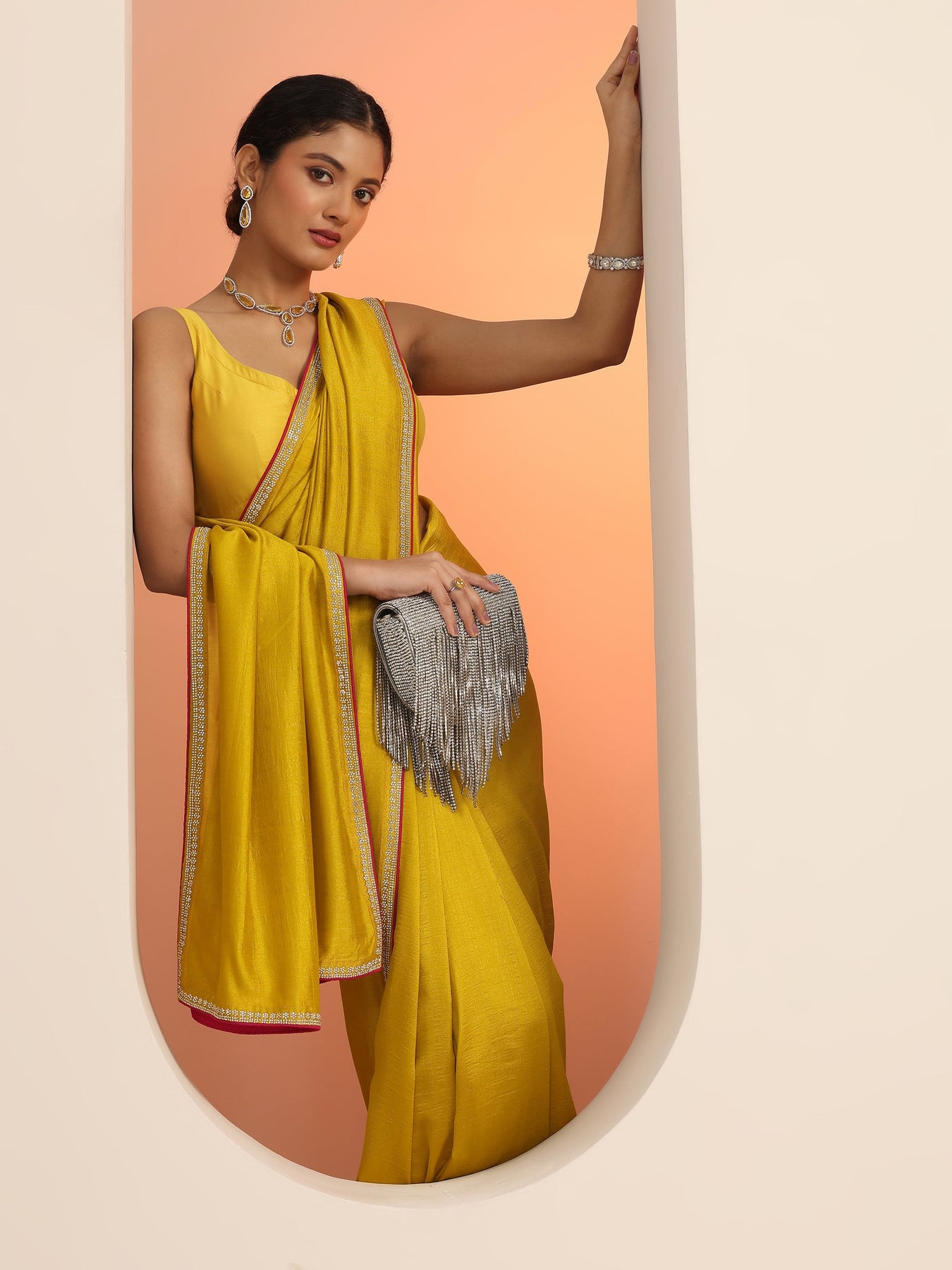 Mustard Solid Silk blend Saree With Unstitched Blouse Piece
