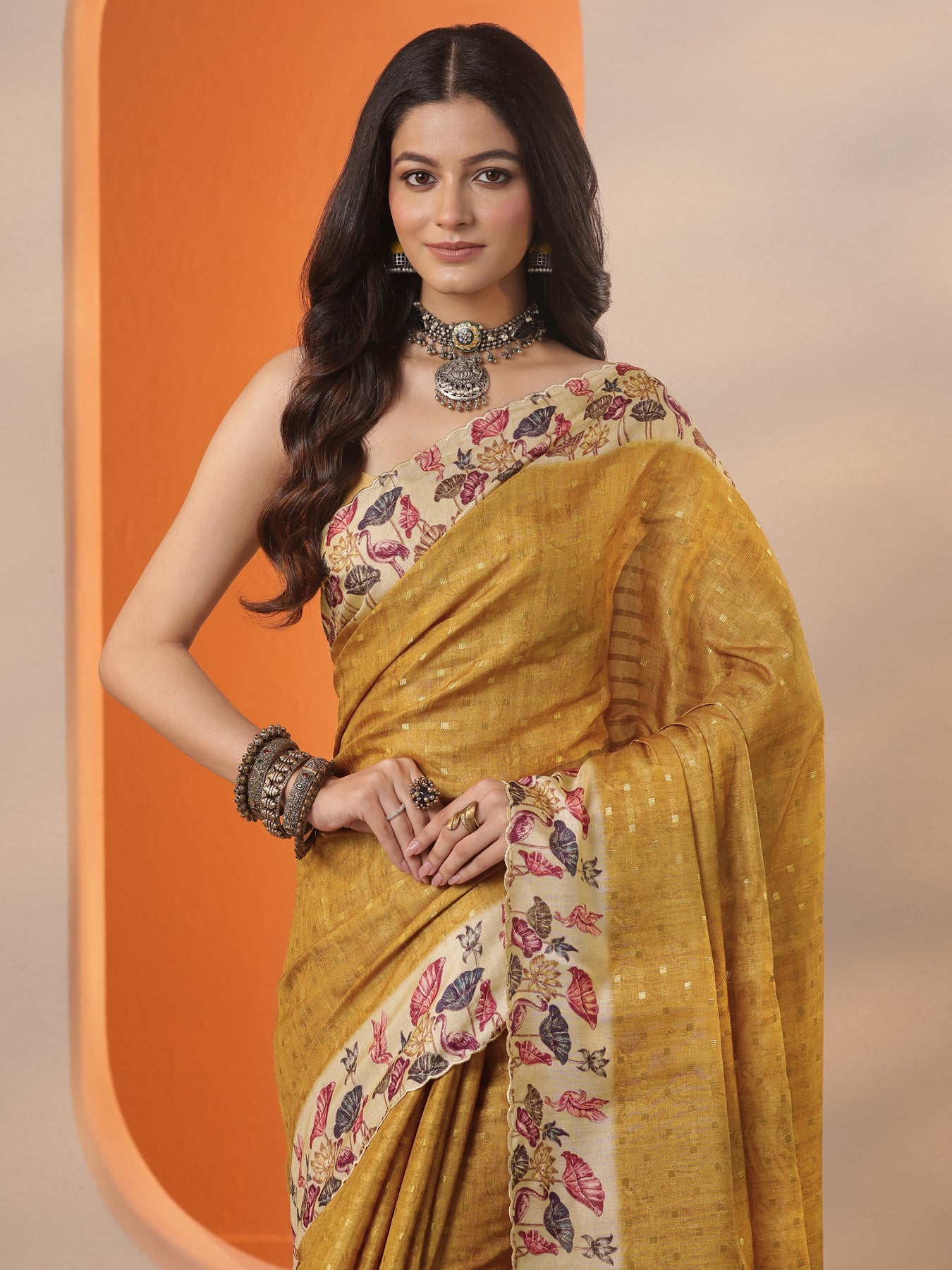 Mustard Woven Design Silk Blend Saree With Unstitched Blouse Piece