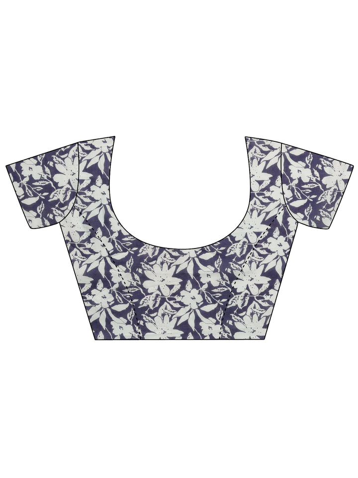 Our navy blue printed cotton saree features captivating top pattern print. Complemented with an unstitched Blouse Piece. This charming saree is perfect for festive occasions