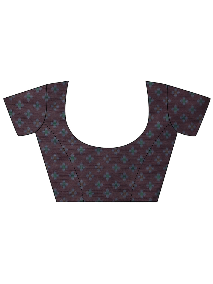Navy Blue Ikat Printed Silk Saree With Unstitched Blouse Piece