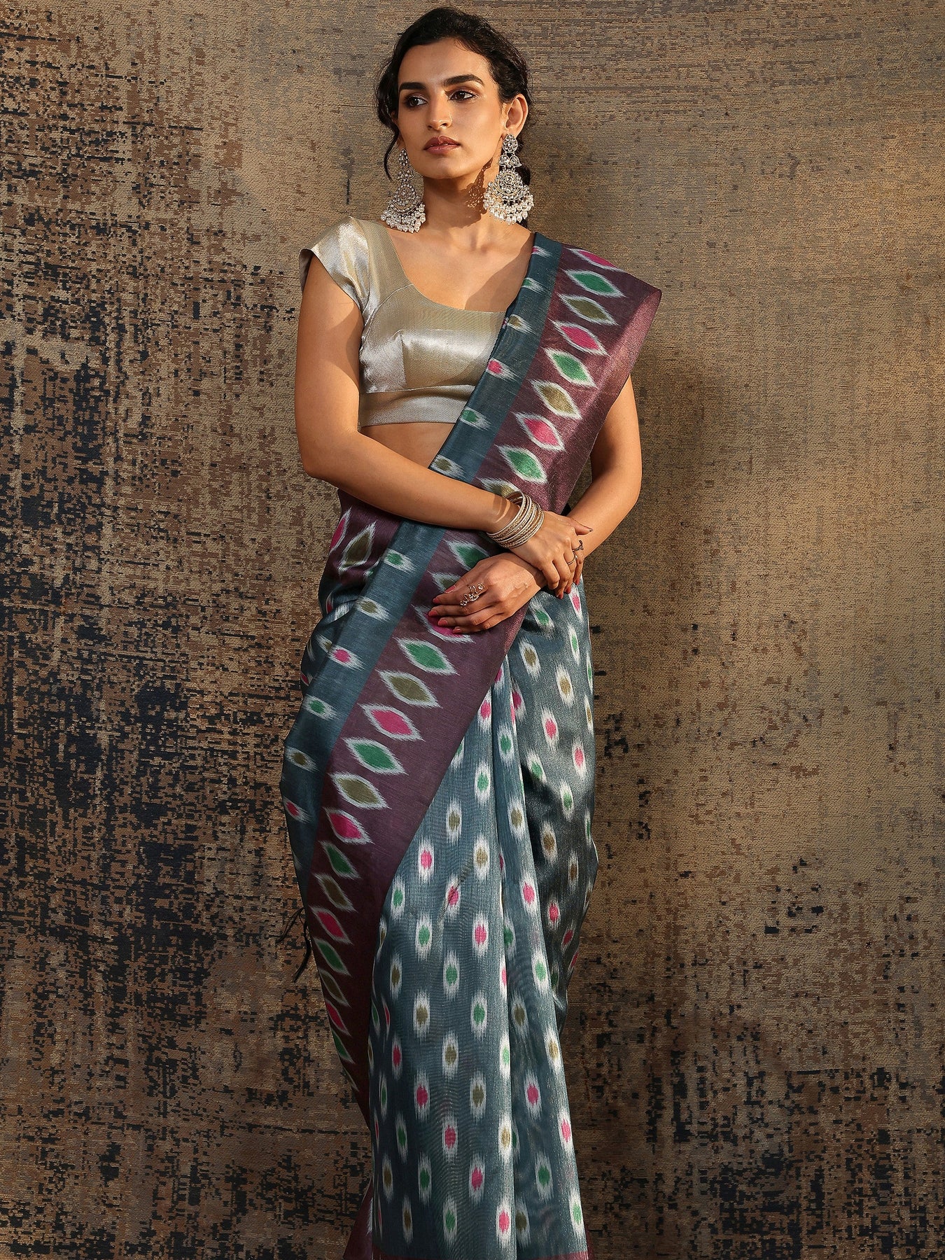 Accessorise with oxidised studs, a potli bag, and mojaris for an effortlessly ethnic appeal.