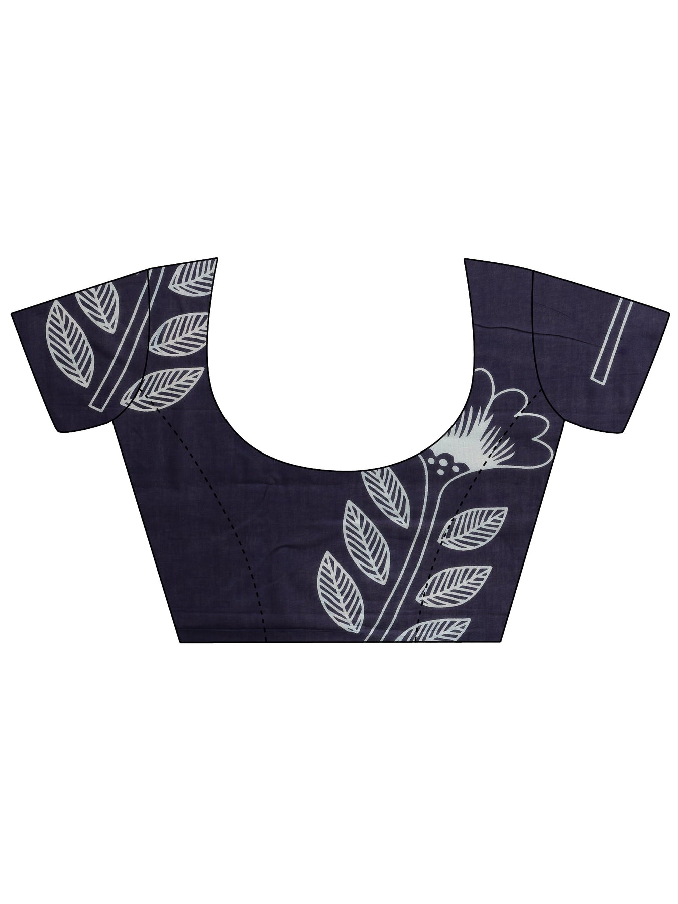 Our navy blue printed cotton saree. Complemented with an unstitched Blouse Piece. This charming saree is perfect for festive occasions