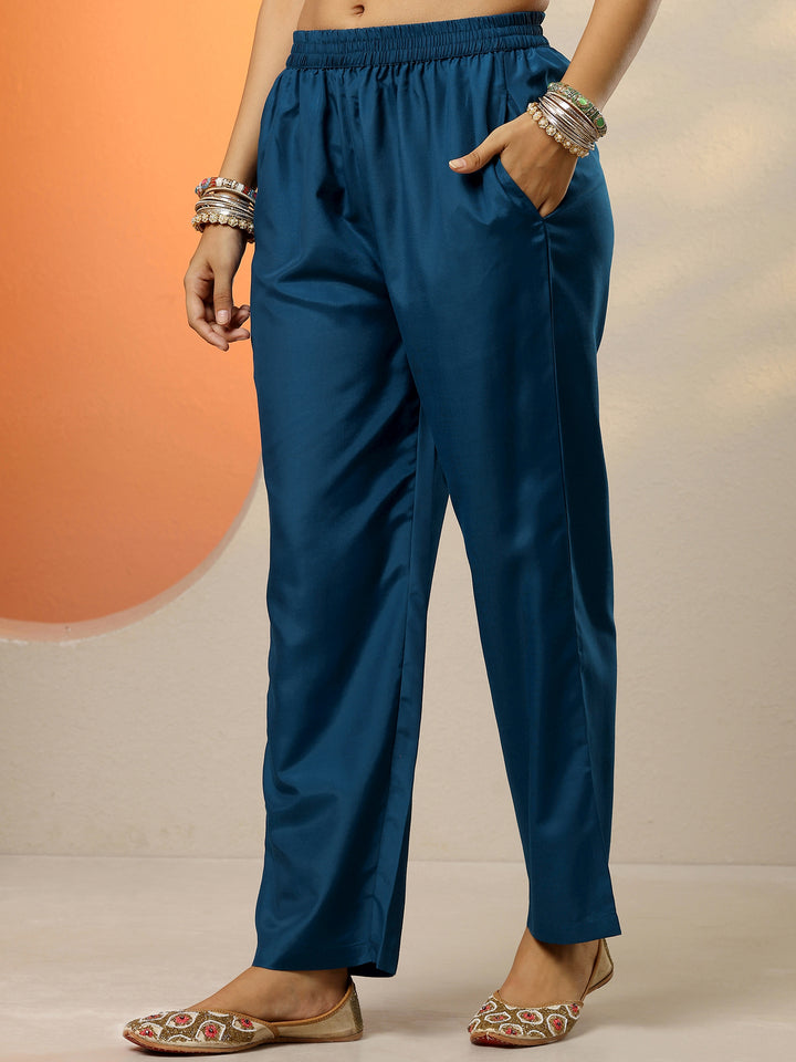 Navy Blue Yoke Design Silk Blend Anarkali Suit Set With Dupatta
