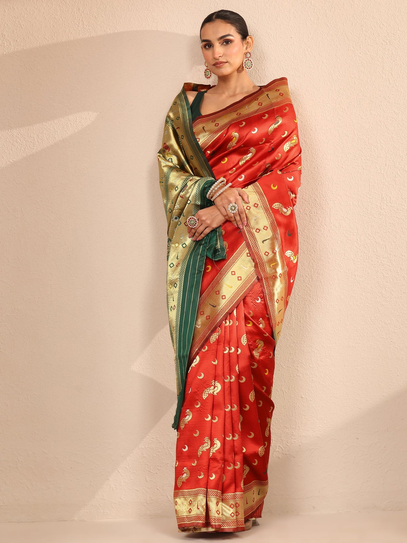 Orange Woven Design Silk Blend Banarasi Saree With Unstitched Blouse Piece