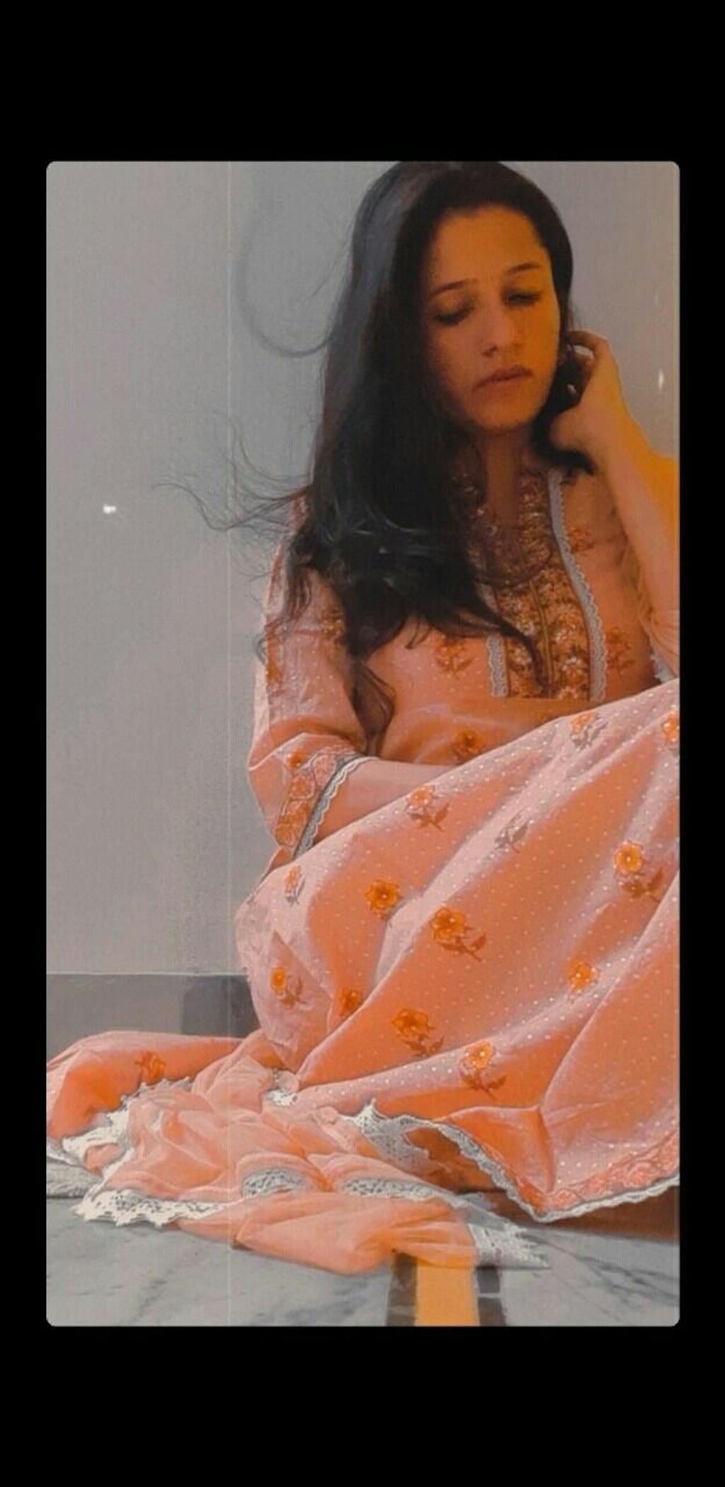 This 3-piece suit set includes our peach v-neck mandarin collar kurta, solid palazzo pants and dupatta. Featuring contrasting yoke details and delicate lace accents. Perfect for outdoor lunches with friends and family.