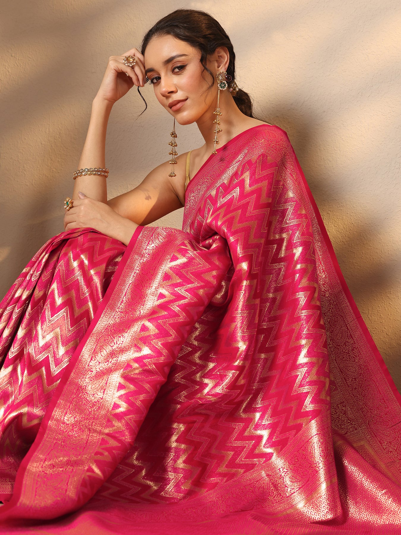 {"id":8576427589782,"title":"Pink Chevron Woven Design Silk Blend Saree With Unstitched Blouse Piece","handle":"pink-chevron-woven-design-silk-blend-saree-with-unstitched-blouse-piece-96669p","description":"\u003cp\u003eOur Pink Woven Design Silk Blend Saree Features Captivating Chevron. Complemented With An Unstitched Blouse Piece. This Charming Saree Is Perfect For Festive Occasions.\u003c\/p\u003e","published_at":"2025-12-20T22:33:25+05:30","created_at":"2025-12-18T10:58:38+05:30","vendor":"Libas","type":"All Products","tags":["96669P","AW25","AW25 SAREE","Chevron","Chevron Sarees","EXCLA","New Launch","NEWARRIVALSAW25","NEWARRIVALSSS25","Pink","Pink Sarees","SAREE","SAREES","Self Design Sarees","Silk blend","Silk Sarees"],"price":179900,"price_min":179900,"price_max":179900,"available":true,"price_varies":false,"compare_at_price":179900,"compare_at_price_min":179900,"compare_at_price_max":179900,"compare_at_price_varies":false,"variants":[{"id":46038044377238,"title":"Onesize","option1":"Onesize","option2":null,"option3":null,"sku":"96669P","requires_shipping":true,"taxable":true,"featured_image":{"id":40698445627542,"product_id":8576427589782,"position":4,"created_at":"2025-12-20T22:33:08+05:30","updated_at":"2025-12-20T22:33:26+05:30","alt":null,"width":2160,"height":2880,"src":"\/\/www.libas.in\/cdn\/shop\/files\/96669P_1.jpg?v=1766250206","variant_ids":[46038044377238]},"available":true,"name":"Pink Chevron Woven Design Silk Blend Saree With Unstitched Blouse Piece - Onesize","public_title":"Onesize","options":["Onesize"],"price":179900,"weight":250,"compare_at_price":179900,"inventory_management":"shopify","barcode":"8909461127191","featured_media":{"alt":null,"id":31735194255510,"position":4,"preview_image":{"aspect_ratio":0.75,"height":2880,"width":2160,"src":"\/\/www.libas.in\/cdn\/shop\/files\/96669P_1.jpg?v=1766250206"}},"requires_selling_plan":false,"selling_plan_allocations":[],"quantity_rule":{"min":1,"max":null,"increment":1}}],"images":["\/\/www.libas.in\/cdn\/shop\/files\/pink-chevron-woven-design-silk-blend-saree-with-unstitched-blouse-piece-96669p.jpg?v=1766250190","\/\/www.libas.in\/cdn\/shop\/files\/96669P_2.jpg?v=1766250206","\/\/www.libas.in\/cdn\/shop\/files\/96669P_3.jpg?v=1766250206","\/\/www.libas.in\/cdn\/shop\/files\/96669P_1.jpg?v=1766250206","\/\/www.libas.in\/cdn\/shop\/files\/96669P_5.jpg?v=1766250206","\/\/www.libas.in\/cdn\/shop\/files\/96669P_4.jpg?v=1766250206","\/\/www.libas.in\/cdn\/shop\/files\/96669P_Blouse.jpg?v=1766250206"],"featured_image":"\/\/www.libas.in\/cdn\/shop\/files\/pink-chevron-woven-design-silk-blend-saree-with-unstitched-blouse-piece-96669p.jpg?v=1766250190","options":["Size"],"media":[{"alt":null,"id":31735194189974,"position":1,"preview_image":{"aspect_ratio":0.75,"height":2880,"width":2160,"src":"\/\/www.libas.in\/cdn\/shop\/files\/pink-chevron-woven-design-silk-blend-saree-with-unstitched-blouse-piece-96669p.jpg?v=1766250190"},"aspect_ratio":0.75,"height":2880,"media_type":"image","src":"\/\/www.libas.in\/cdn\/shop\/files\/pink-chevron-woven-design-silk-blend-saree-with-unstitched-blouse-piece-96669p.jpg?v=1766250190","width":2160},{"alt":null,"id":31735194288278,"position":2,"preview_image":{"aspect_ratio":0.75,"height":2880,"width":2160,"src":"\/\/www.libas.in\/cdn\/shop\/files\/96669P_2.jpg?v=1766250206"},"aspect_ratio":0.75,"height":2880,"media_type":"image","src":"\/\/www.libas.in\/cdn\/shop\/files\/96669P_2.jpg?v=1766250206","width":2160},{"alt":null,"id":31735194321046,"position":3,"preview_image":{"aspect_ratio":0.75,"height":2880,"width":2160,"src":"\/\/www.libas.in\/cdn\/shop\/files\/96669P_3.jpg?v=1766250206"},"aspect_ratio":0.75,"height":2880,"media_type":"image","src":"\/\/www.libas.in\/cdn\/shop\/files\/96669P_3.jpg?v=1766250206","width":2160},{"alt":null,"id":31735194255510,"position":4,"preview_image":{"aspect_ratio":0.75,"height":2880,"width":2160,"src":"\/\/www.libas.in\/cdn\/shop\/files\/96669P_1.jpg?v=1766250206"},"aspect_ratio":0.75,"height":2880,"media_type":"image","src":"\/\/www.libas.in\/cdn\/shop\/files\/96669P_1.jpg?v=1766250206","width":2160},{"alt":null,"id":31735194386582,"position":5,"preview_image":{"aspect_ratio":0.75,"height":2880,"width":2160,"src":"\/\/www.libas.in\/cdn\/shop\/files\/96669P_5.jpg?v=1766250206"},"aspect_ratio":0.75,"height":2880,"media_type":"image","src":"\/\/www.libas.in\/cdn\/shop\/files\/96669P_5.jpg?v=1766250206","width":2160},{"alt":null,"id":31735194353814,"position":6,"preview_image":{"aspect_ratio":0.75,"height":2880,"width":2160,"src":"\/\/www.libas.in\/cdn\/shop\/files\/96669P_4.jpg?v=1766250206"},"aspect_ratio":0.75,"height":2880,"media_type":"image","src":"\/\/www.libas.in\/cdn\/shop\/files\/96669P_4.jpg?v=1766250206","width":2160},{"alt":null,"id":31735194222742,"position":7,"preview_image":{"aspect_ratio":0.75,"height":2880,"width":2160,"src":"\/\/www.libas.in\/cdn\/shop\/files\/96669P_Blouse.jpg?v=1766250206"},"aspect_ratio":0.75,"height":2880,"media_type":"image","src":"\/\/www.libas.in\/cdn\/shop\/files\/96669P_Blouse.jpg?v=1766250206","width":2160}],"requires_selling_plan":false,"selling_plan_groups":[],"content":"\u003cp\u003eOur Pink Woven Design Silk Blend Saree Features Captivating Chevron. Complemented With An Unstitched Blouse Piece. This Charming Saree Is Perfect For Festive Occasions.\u003c\/p\u003e"}
