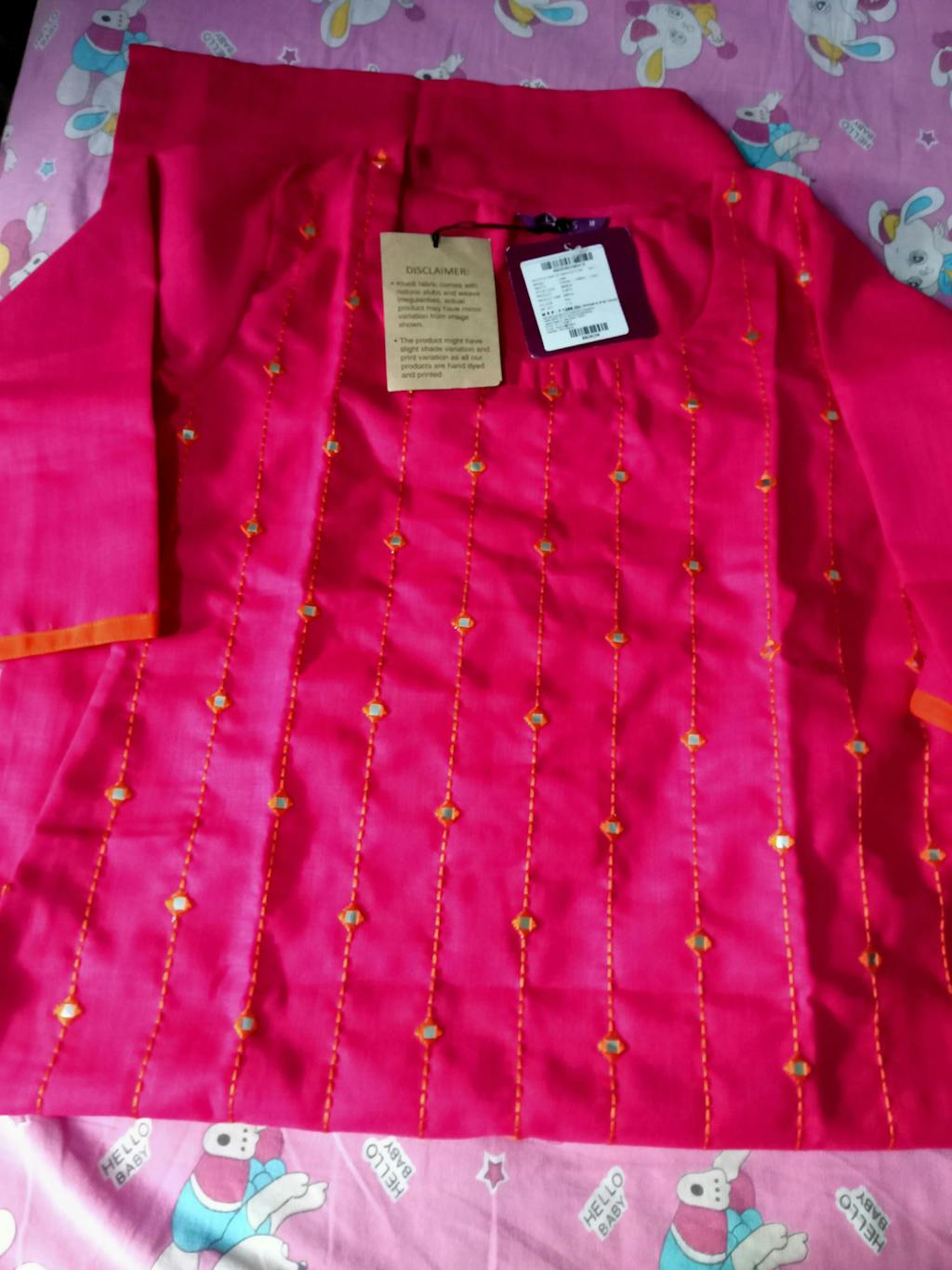 Pink Mirror Work Cotton Kurta
