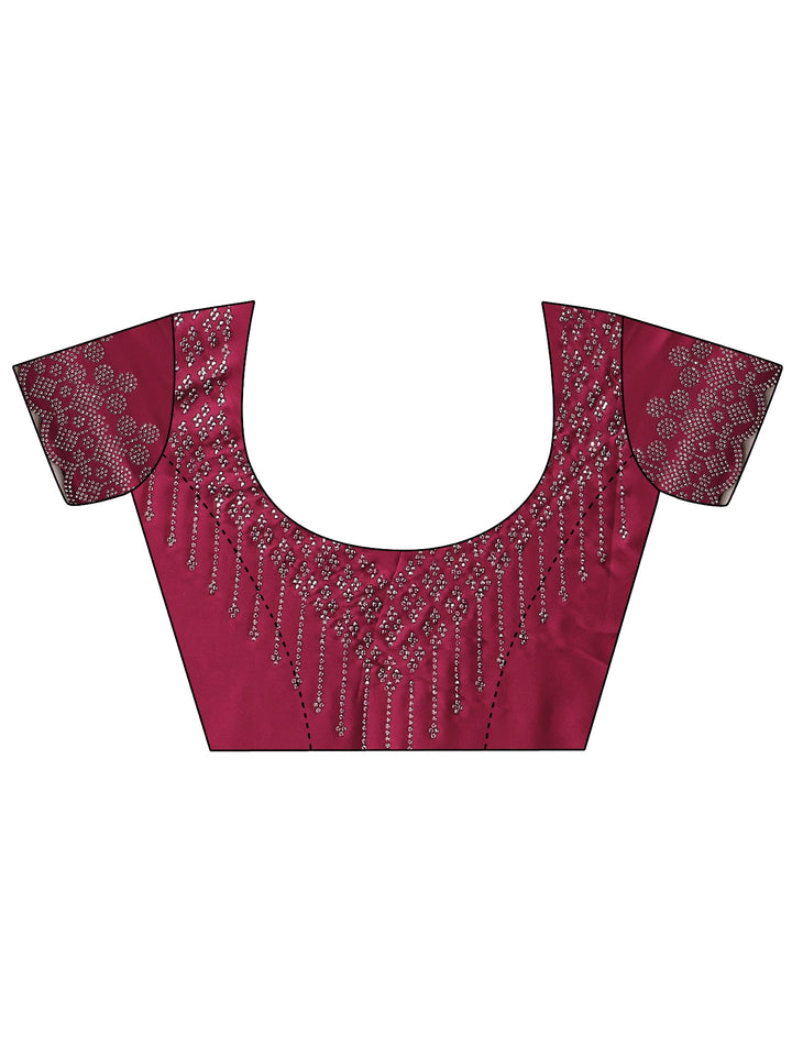 Our magenta silk blend saree features captivating na. Complemented with an unstitched blouse piece. This charming saree is perfect for festive occasions.