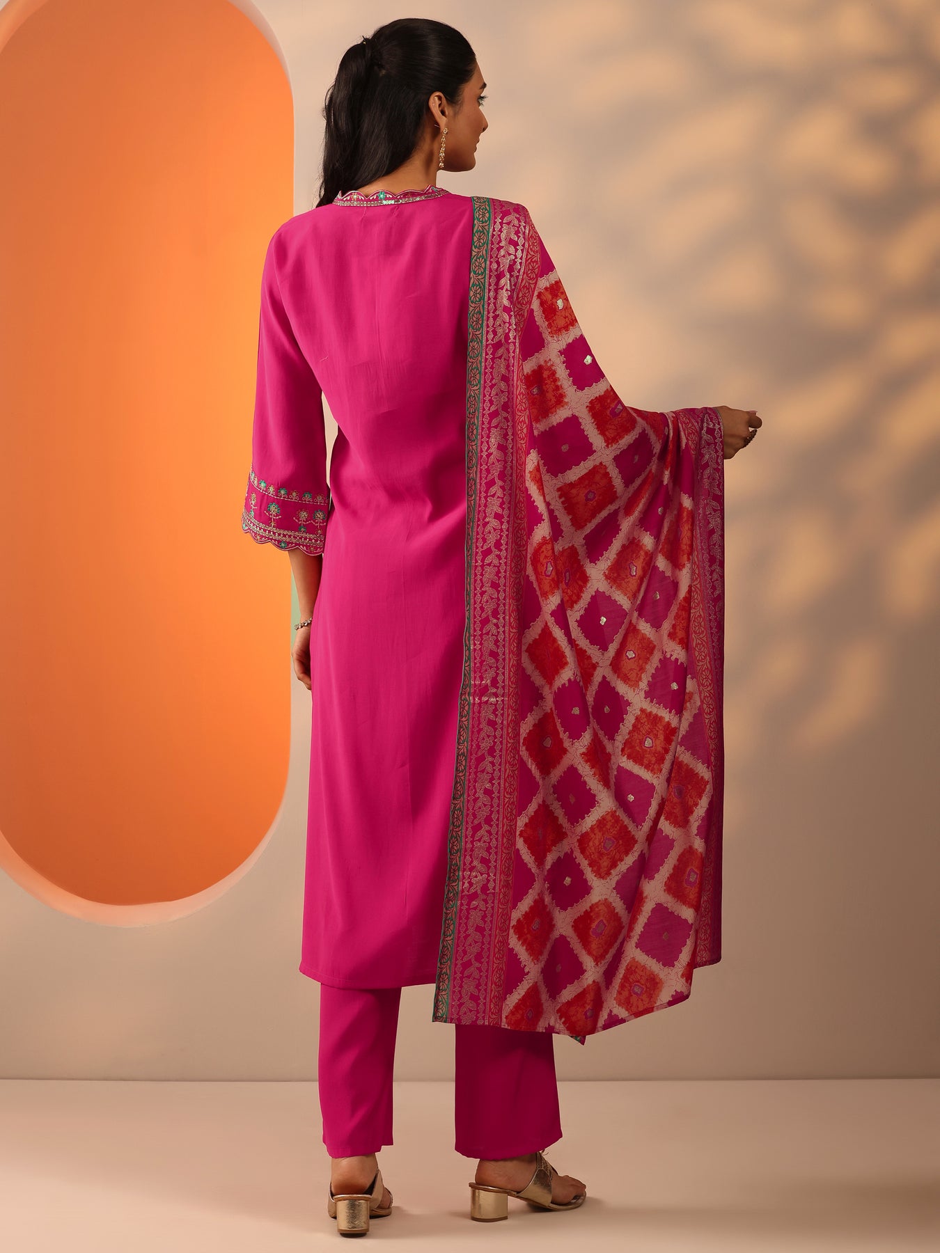 Pink Embellished Silk Blend Straight Suit Set With Dupatta