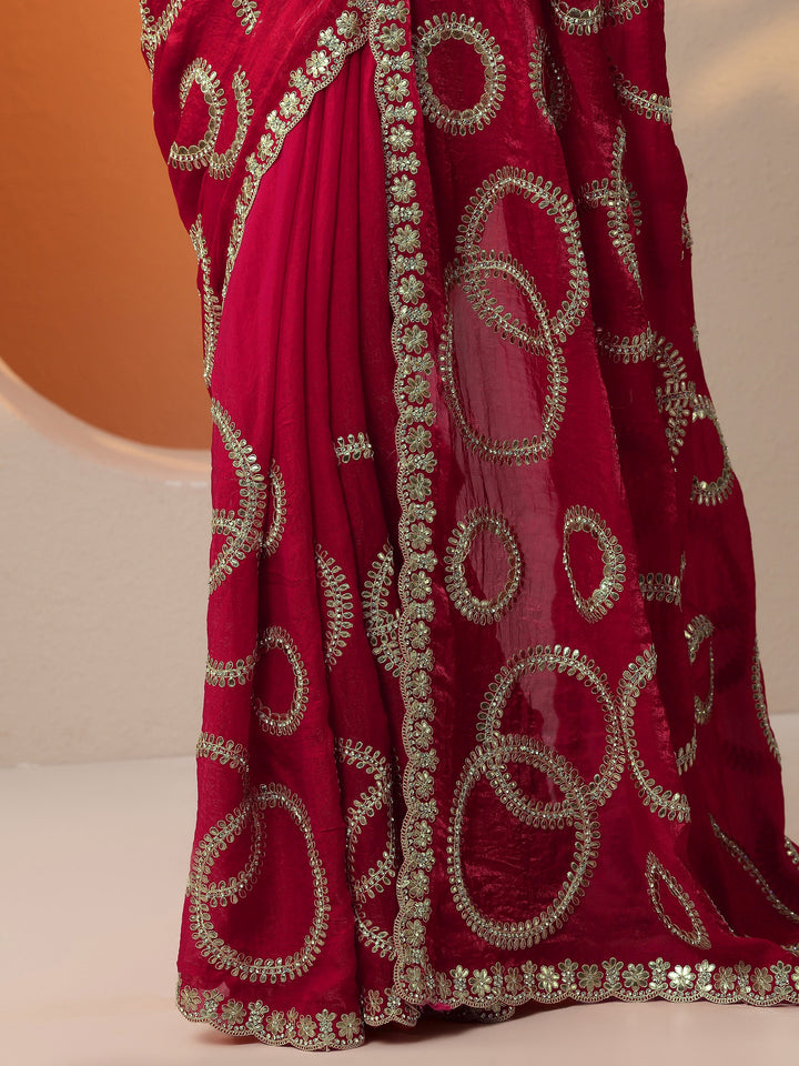 Pink Embroidered Organza Saree With Unstitched Blouse Piece