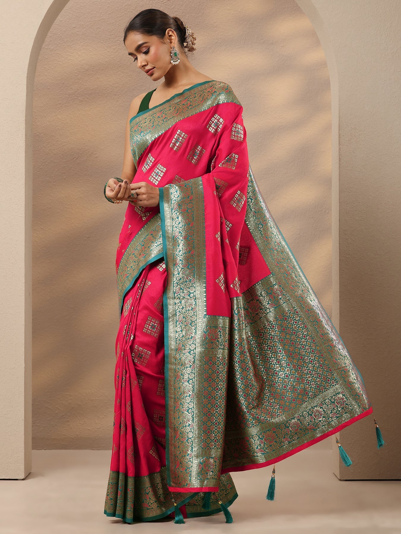 "image": "//www.libas.in/cdn/shop/files/pink-geometric-woven-design-silk-blend-saree-with-unstitched-blouse-piece-96619p.jpg?v=1766658069",