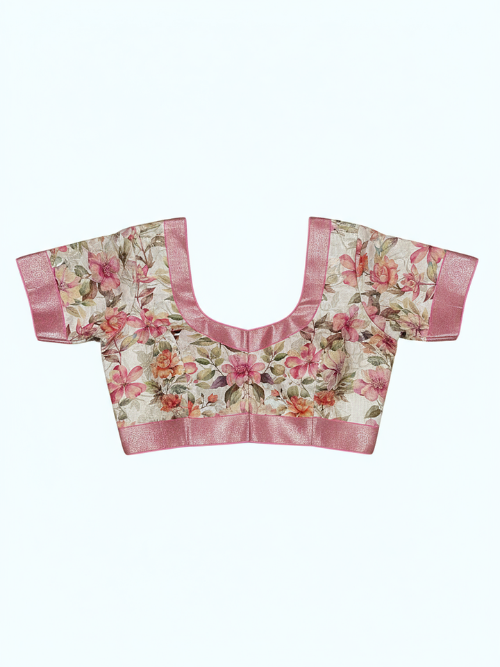 Pink Printed Silk Blend Saree With Unstitched Blouse Piece