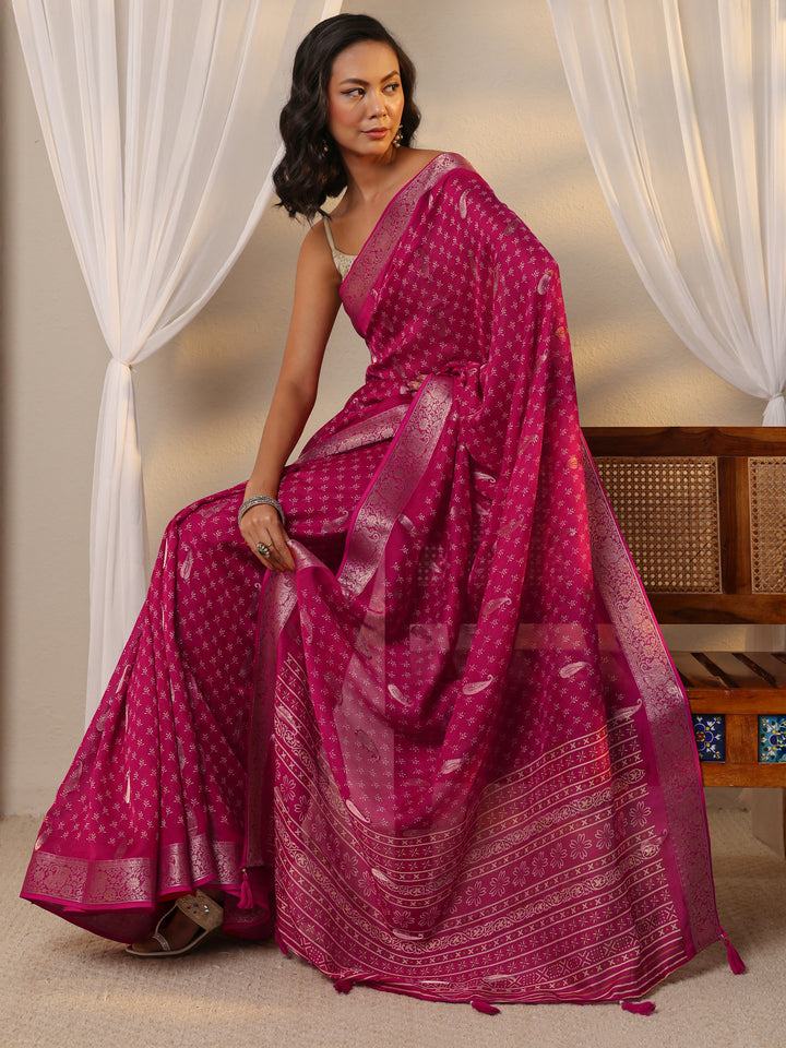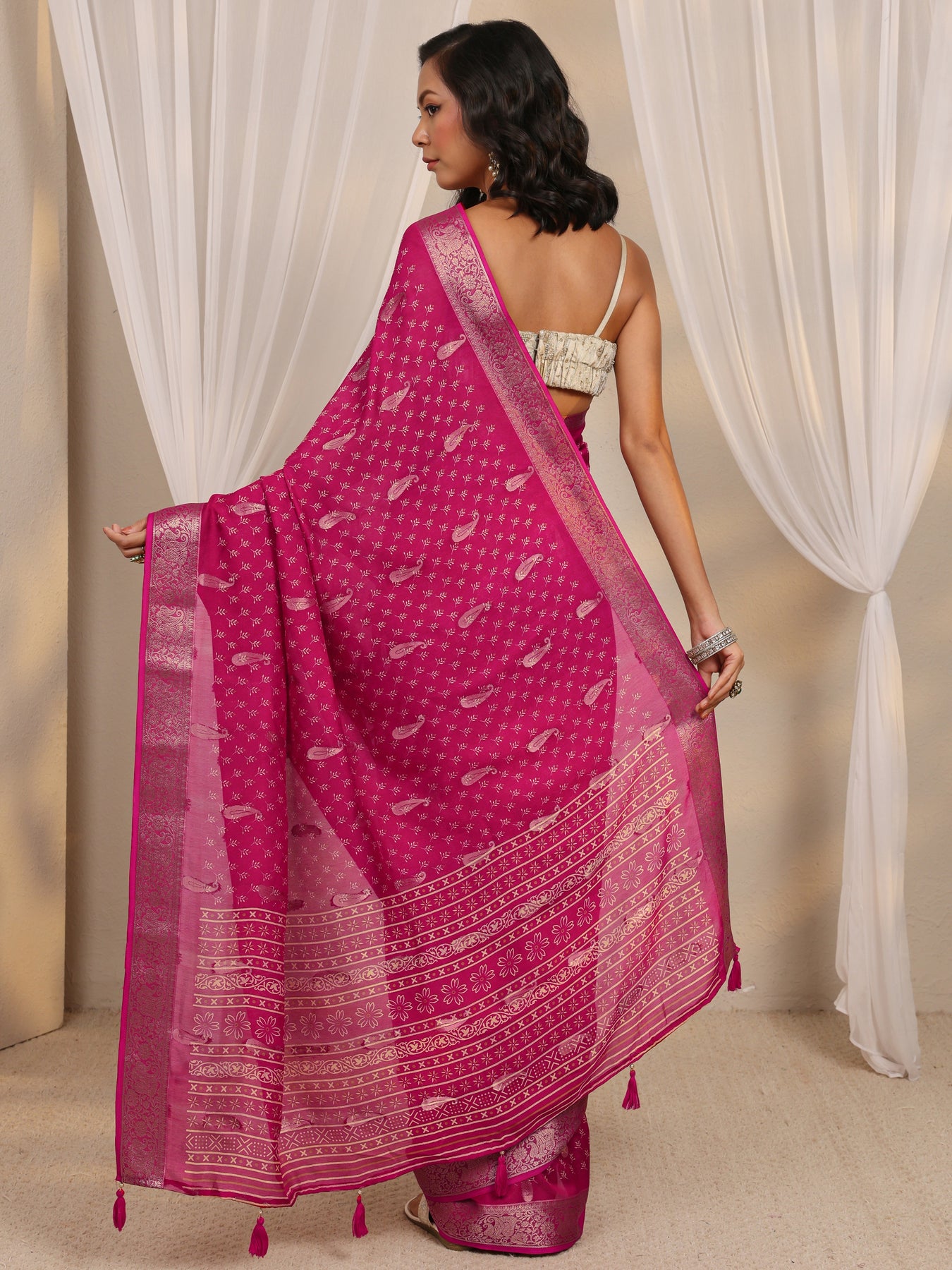 Pink Woven Design Paisley Silk Blend Saree With Unstitched Blouse Piec