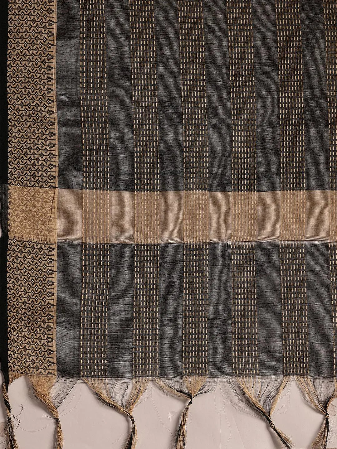 Plus Size Black Self Design Cotton Blend Straight Suit With Dupatta
