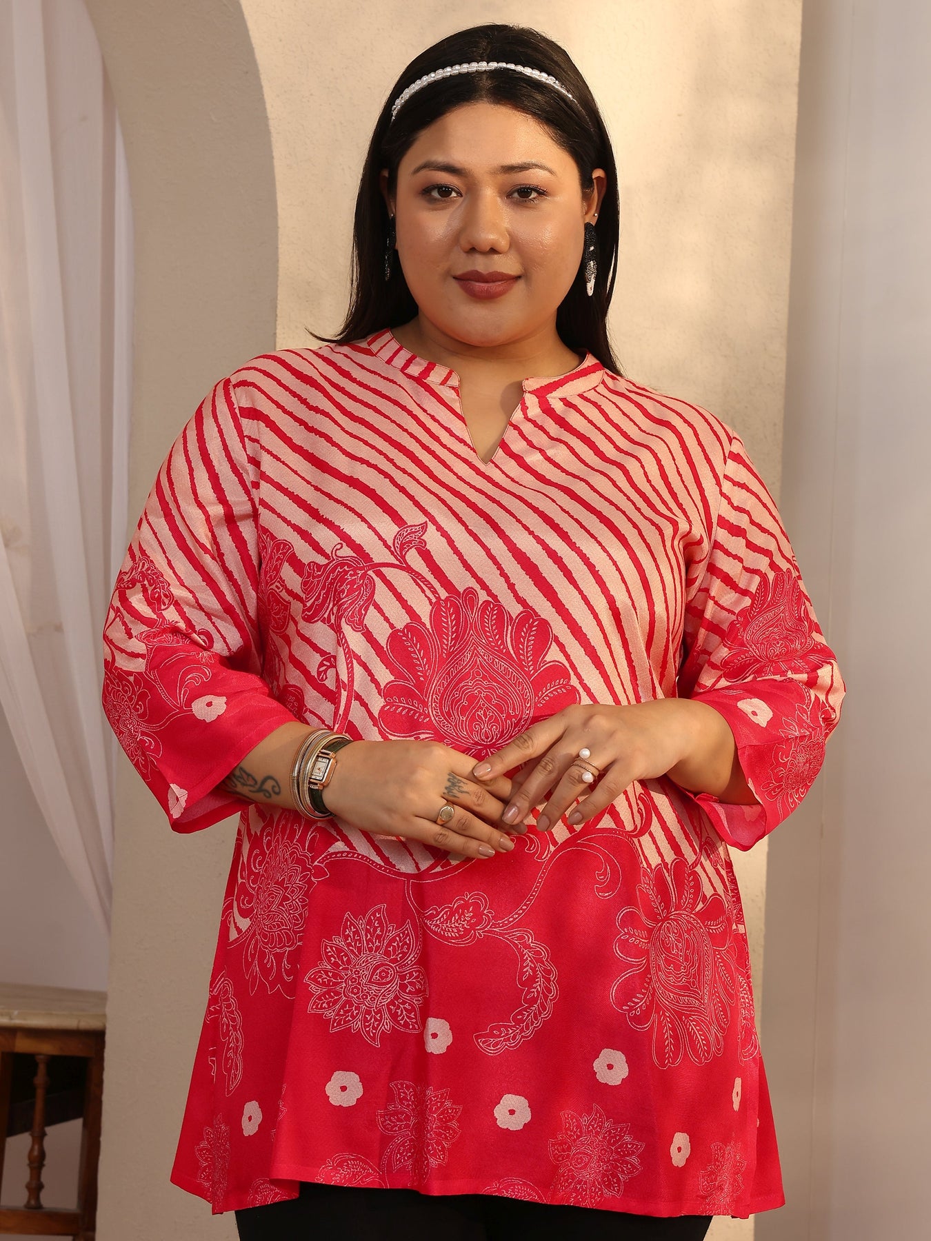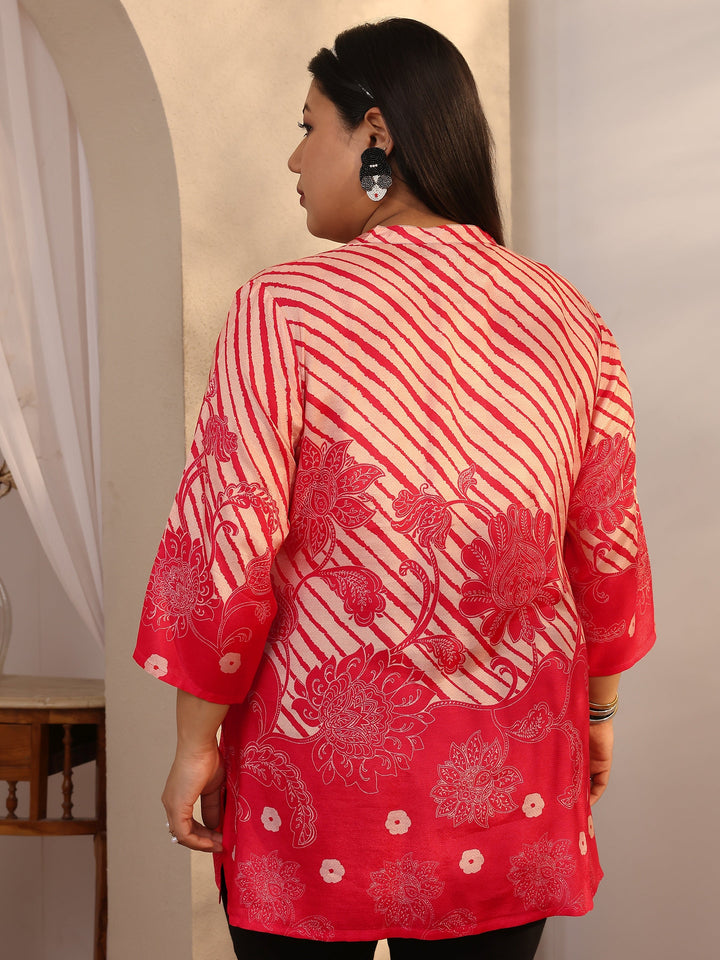 Plus Size Coral Printed Muslin Straight Short Kurti