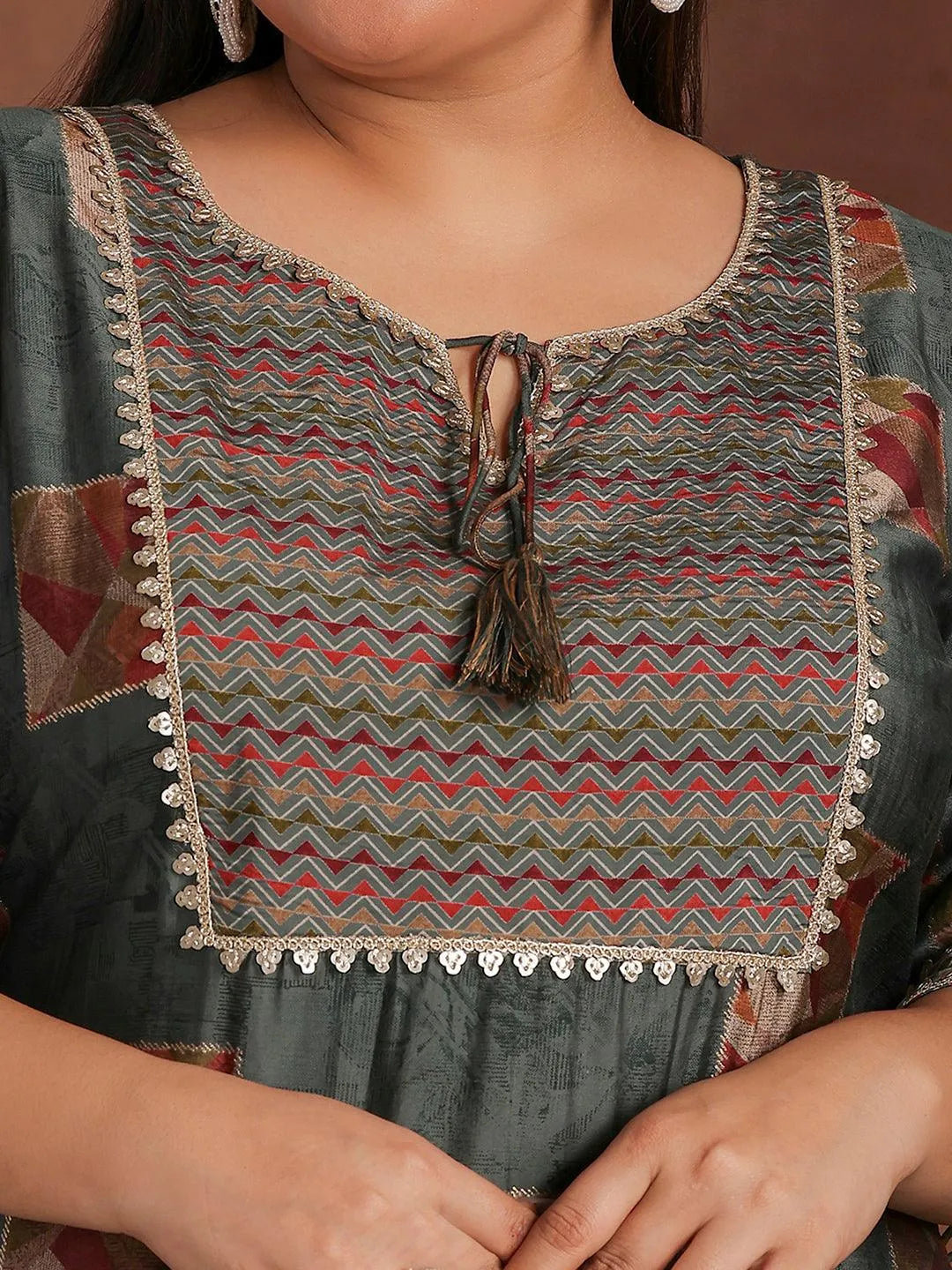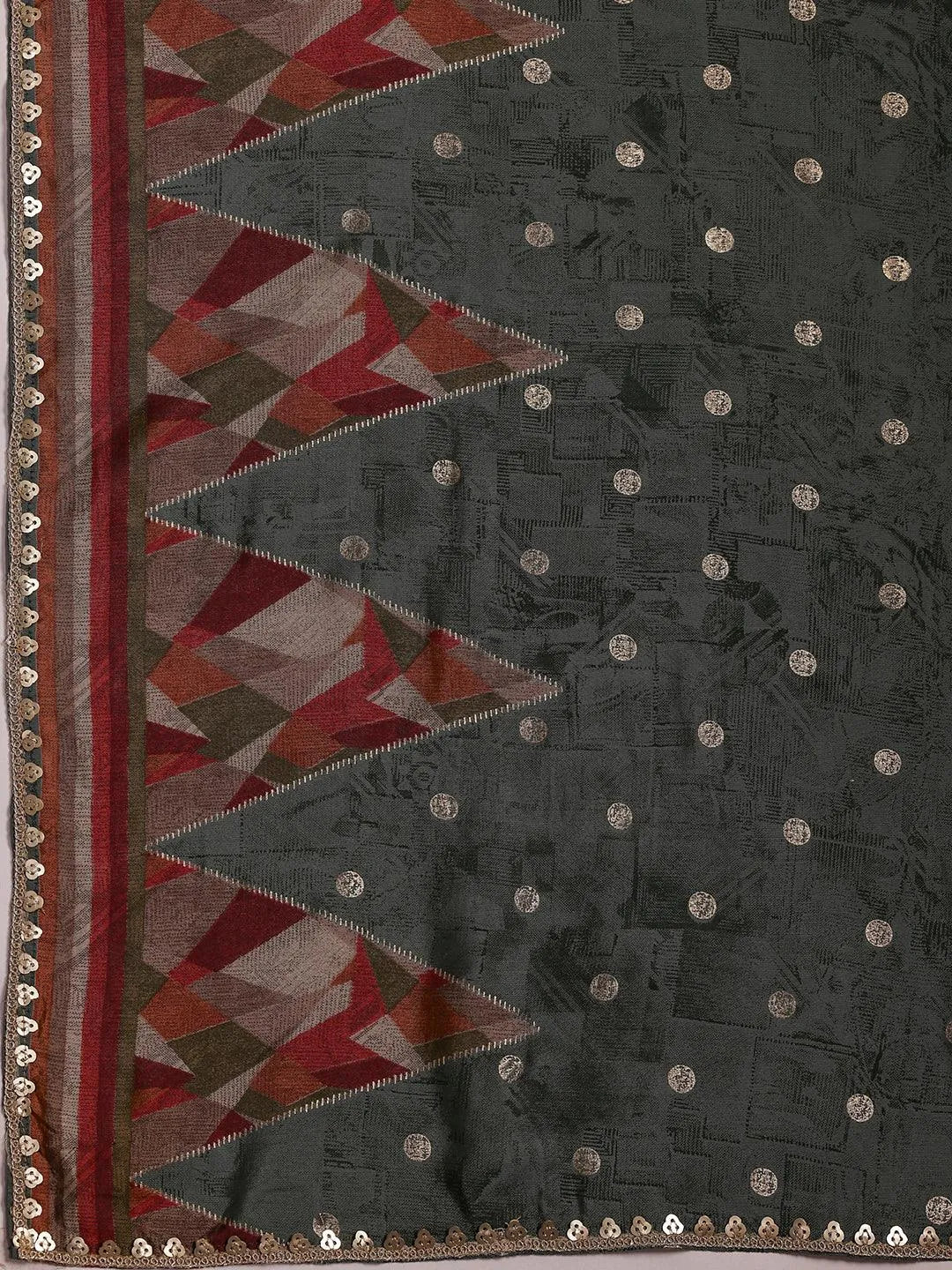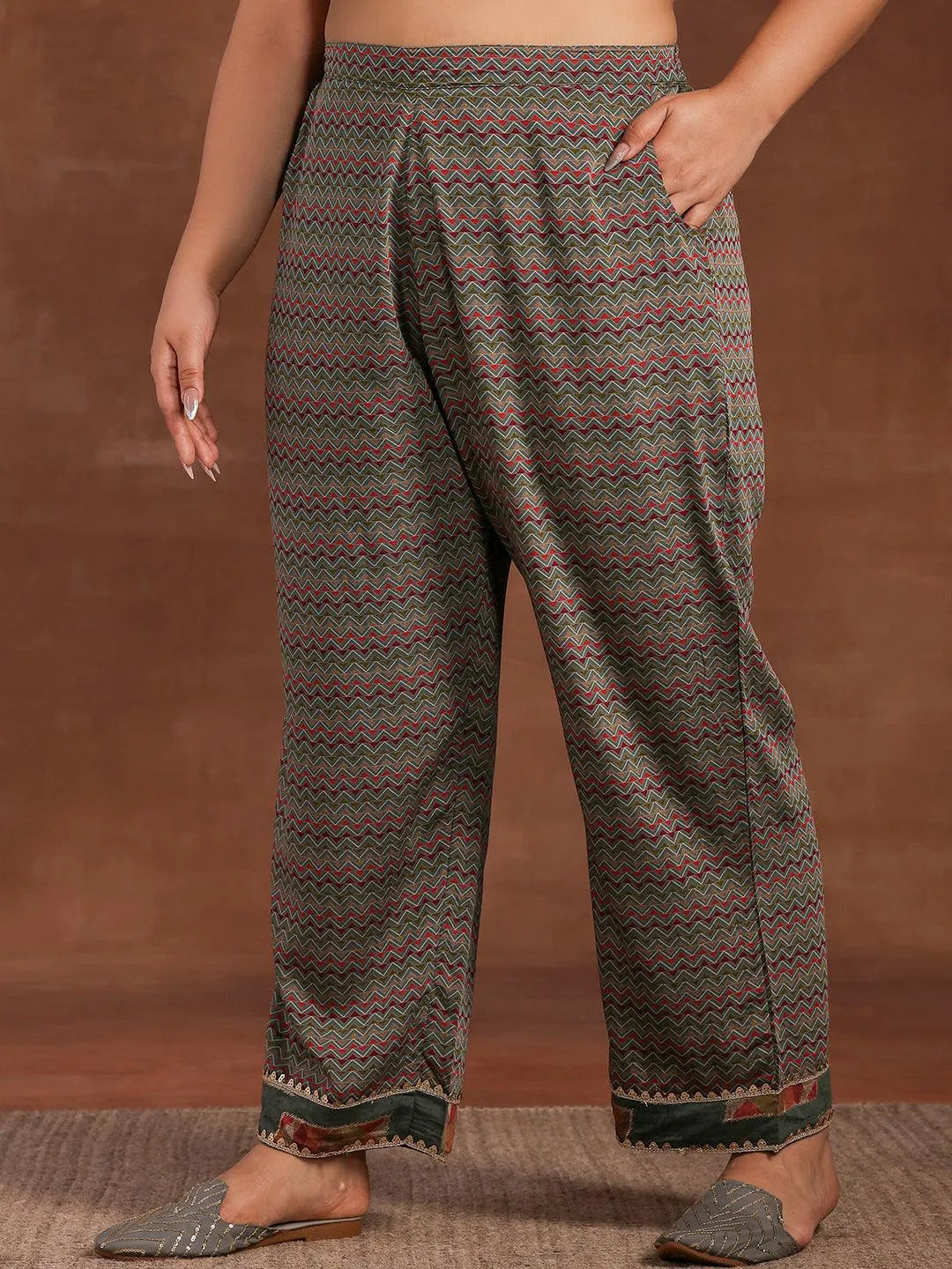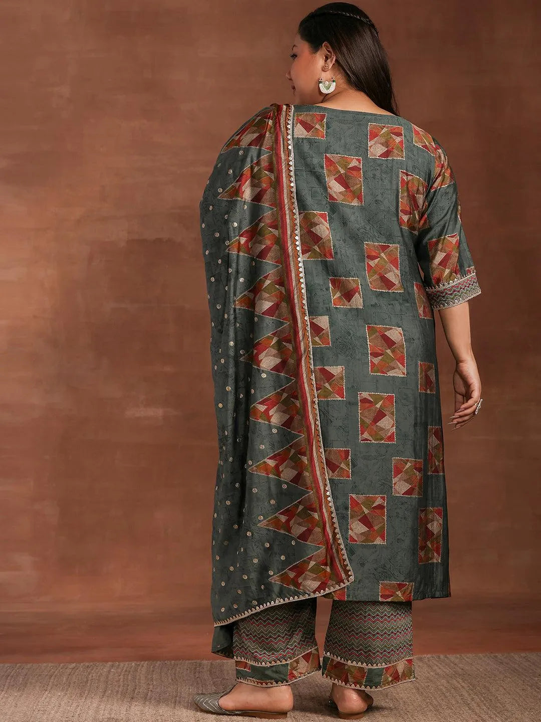 Plus Size Green Printed Silk Blend Straight Suit With Dupatta