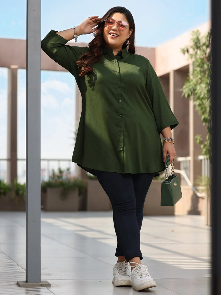Libas Extra Love collection features our signature designs in comfortable plus sizes. Our 1-piece olive viscose rayon A-line features a mandarin collar neckline, regular sleeves and statement Yoke. This style is perfect for casual occasions.