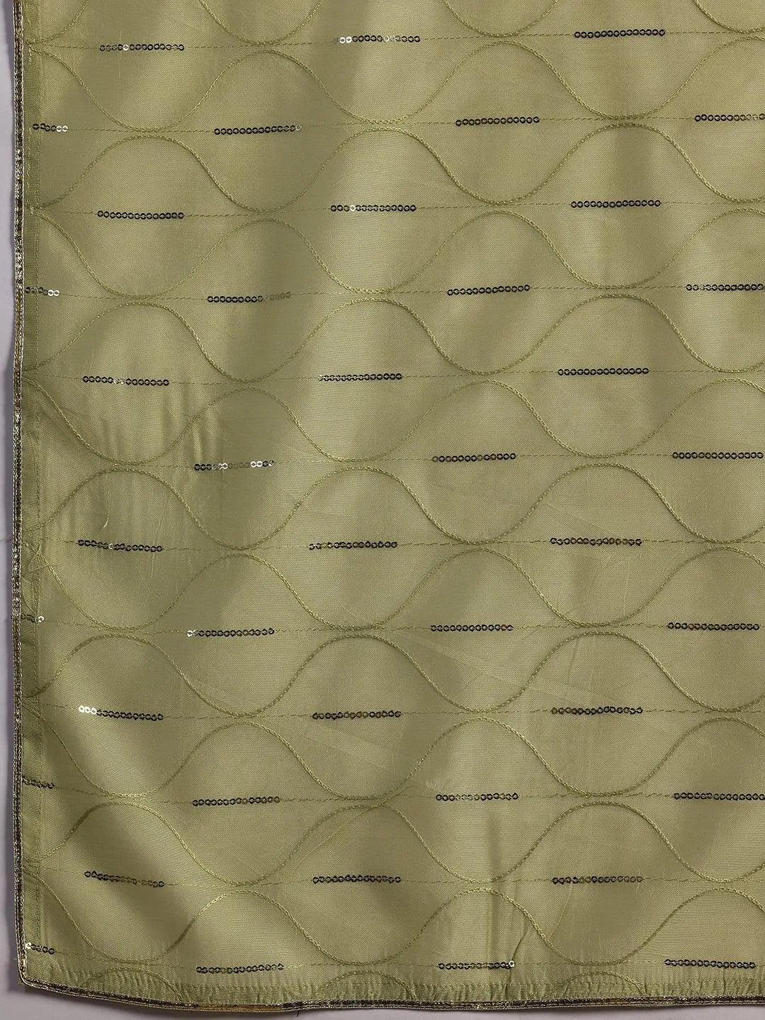 Plus Size Green Yoke Design Silk Blend Straight Suit With Dupatta