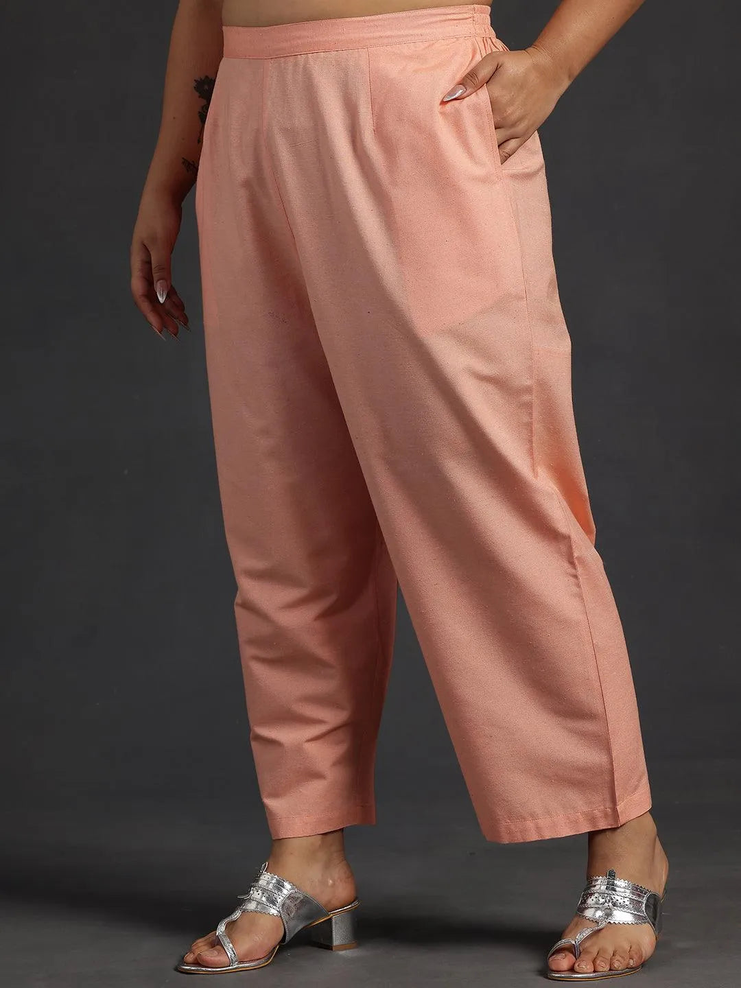 Plus Size Peach Self Design Cotton Straight Kurta Set