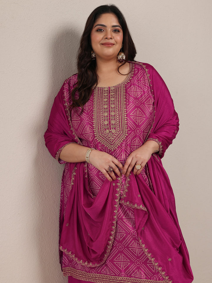 Plus Size Pink Bandhani Printed Chinon Straight Suit Set With Dupatta