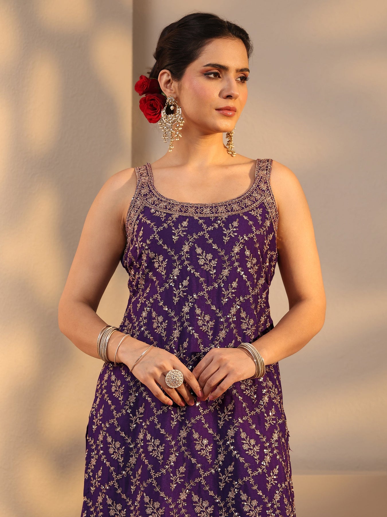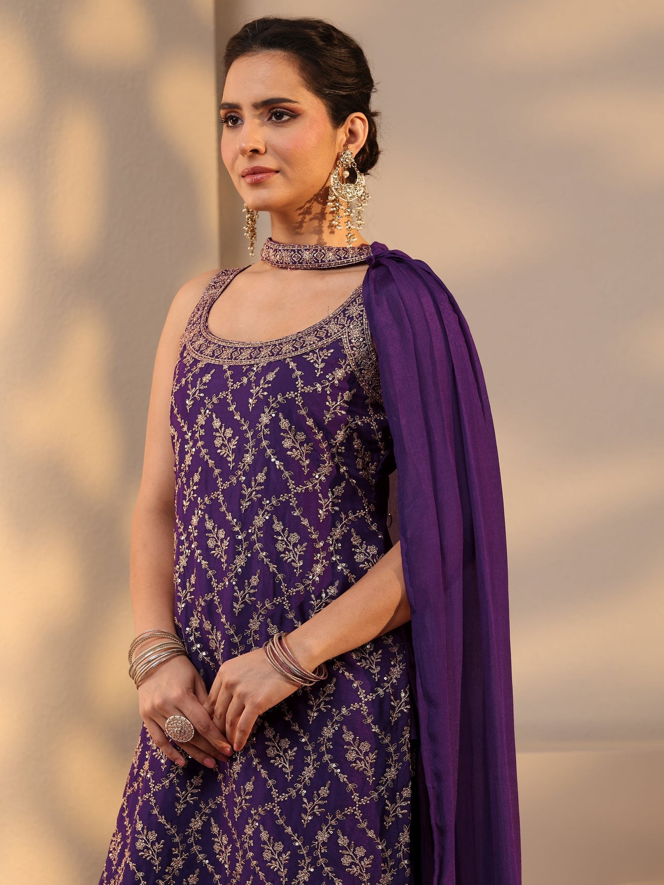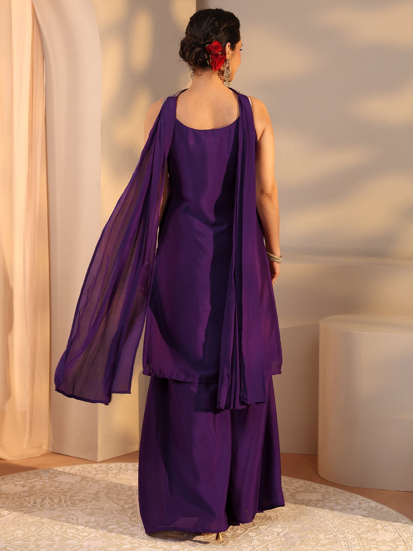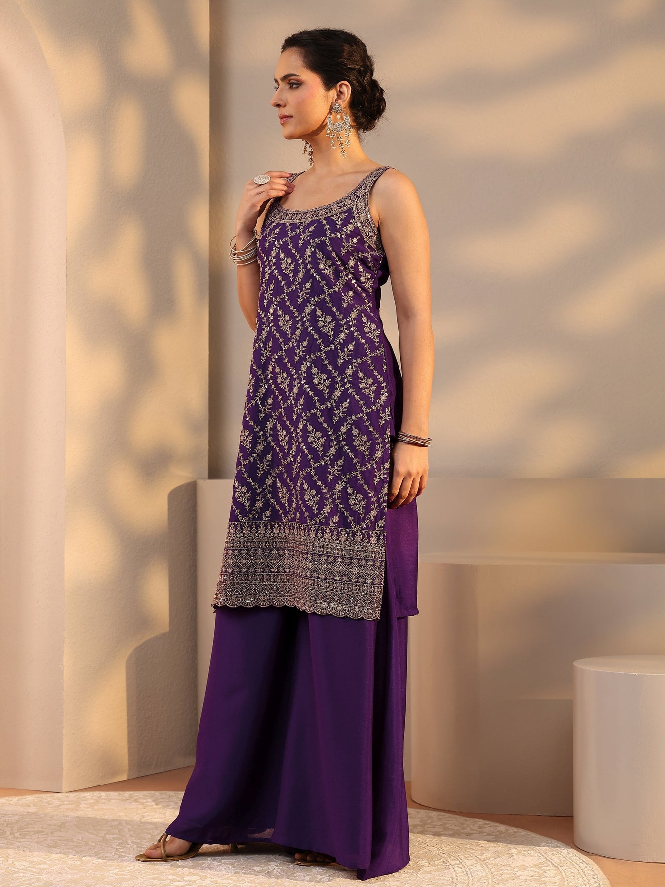 Purple Embellished Chinon Palazzo Suit Set With Dupatta