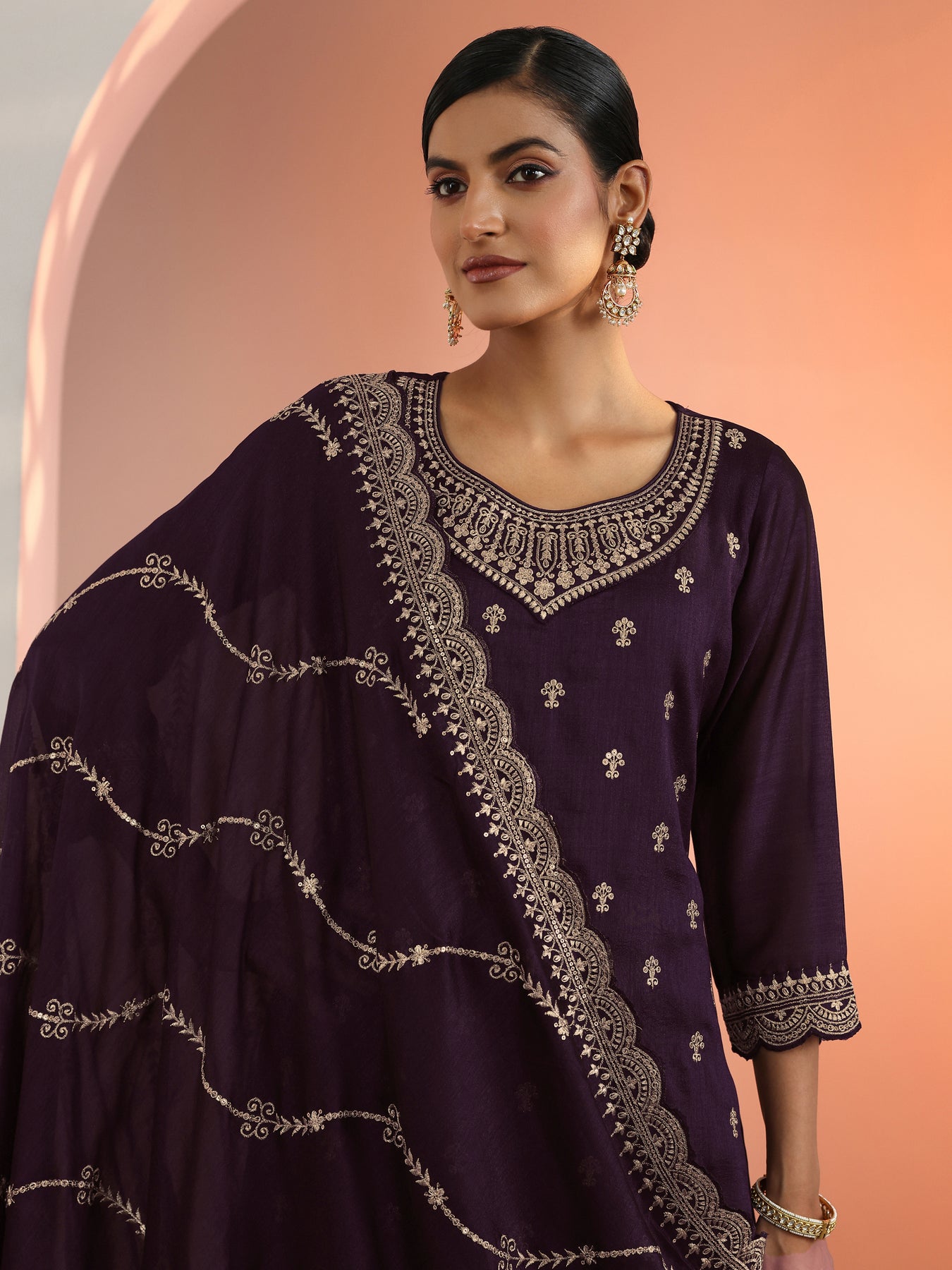 Purple Embroidered Chinon Straight Suit Set With Dupatta