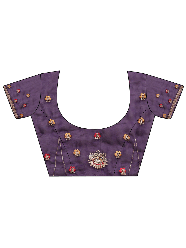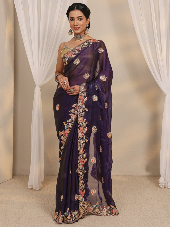 Purple Ethnic Embroidered Tissue Saree With Unstitched Blouse Piece