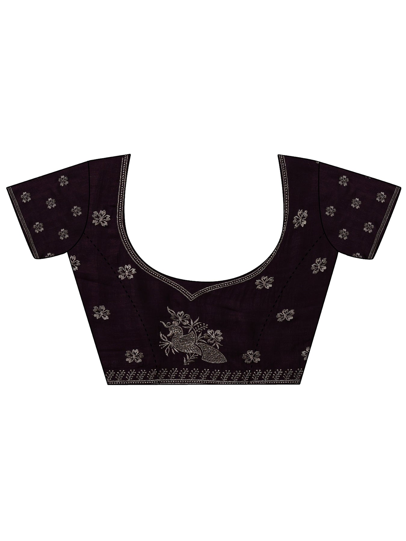 Purple Floral Embroidered Silk Blend Saree With Unstitched Blouse Piece