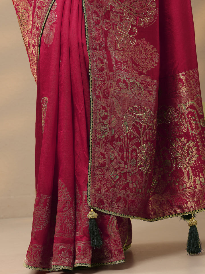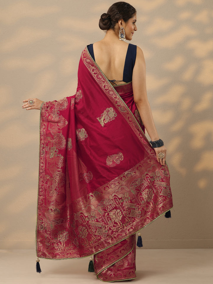 Red Embellished Banarasi Silk Blend Saree With Unstitched Blouse Piece