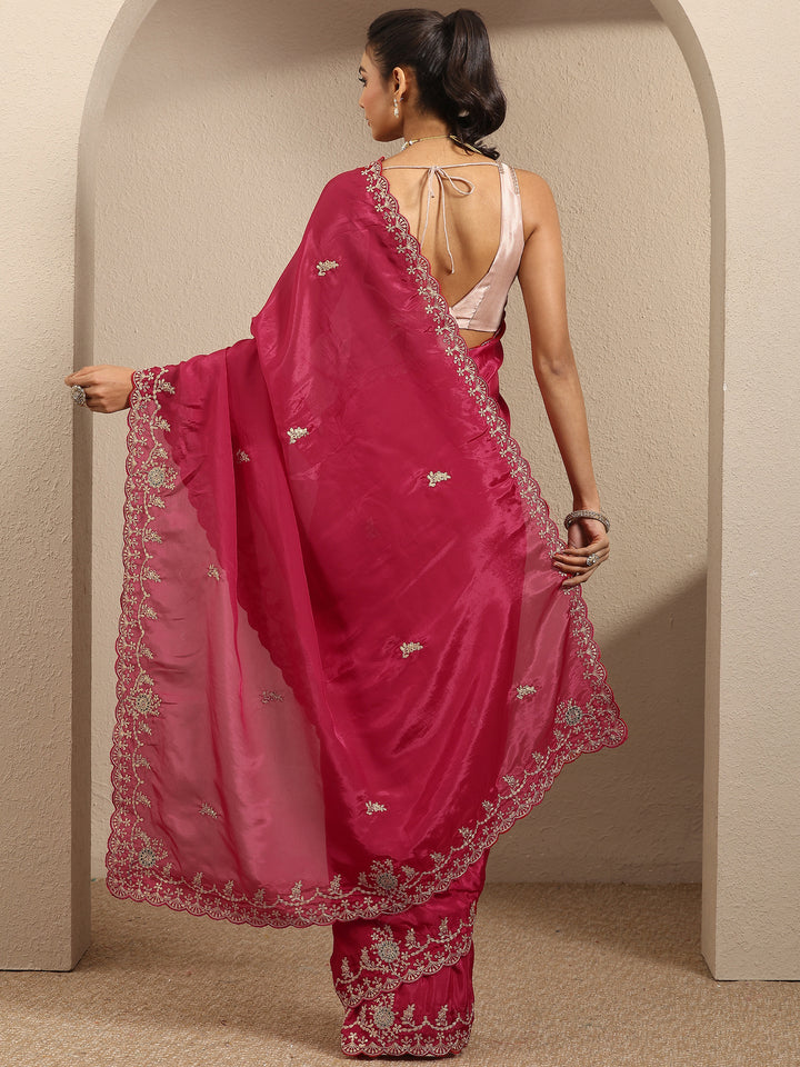Red Embroidered Silk Blend Saree With Unstitched Blouse Piece