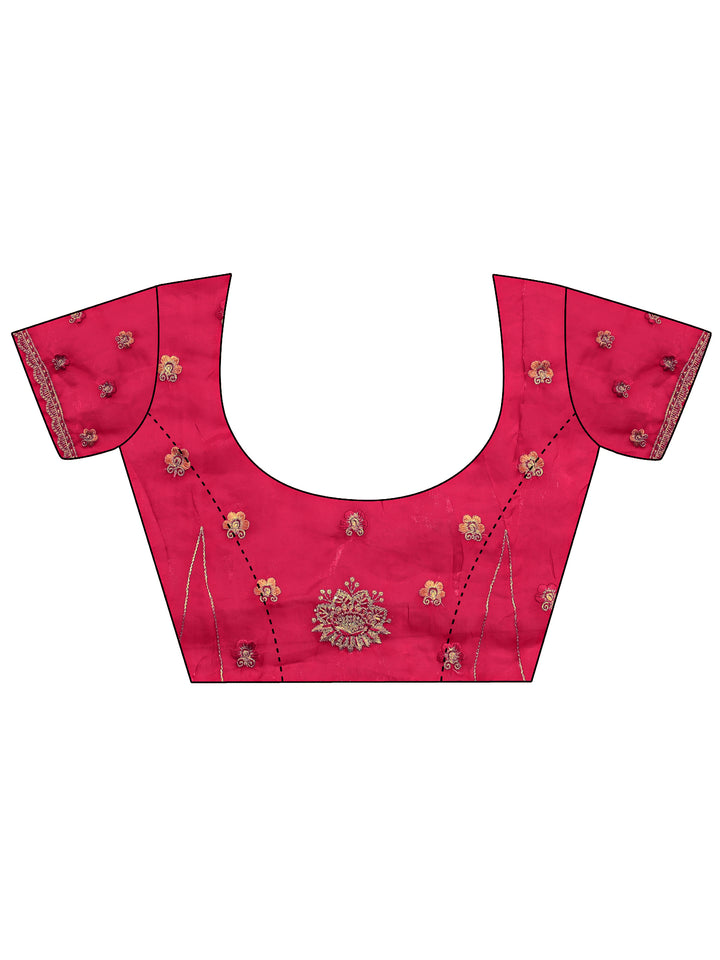 Red Floral Embellished Tissue Saree With Unstitched Blouse Piece