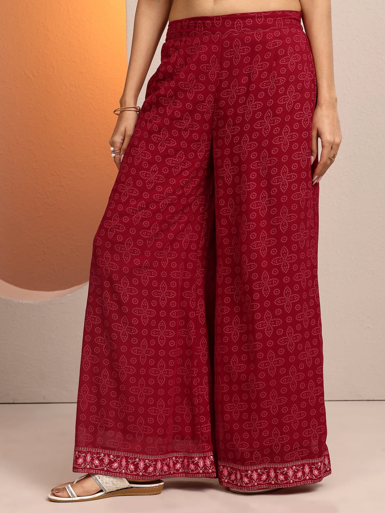 Our 3-piece Red Georgette Anarkali Kurta Set features a Strappy Neckline and statement yoke. Complemented with Palazzo Pants with a Partially Elasticated waistband and 2 pockets, and an Embroidered dupatta. Adorned with bandhani printed, this style is perfect for Dark Festive.