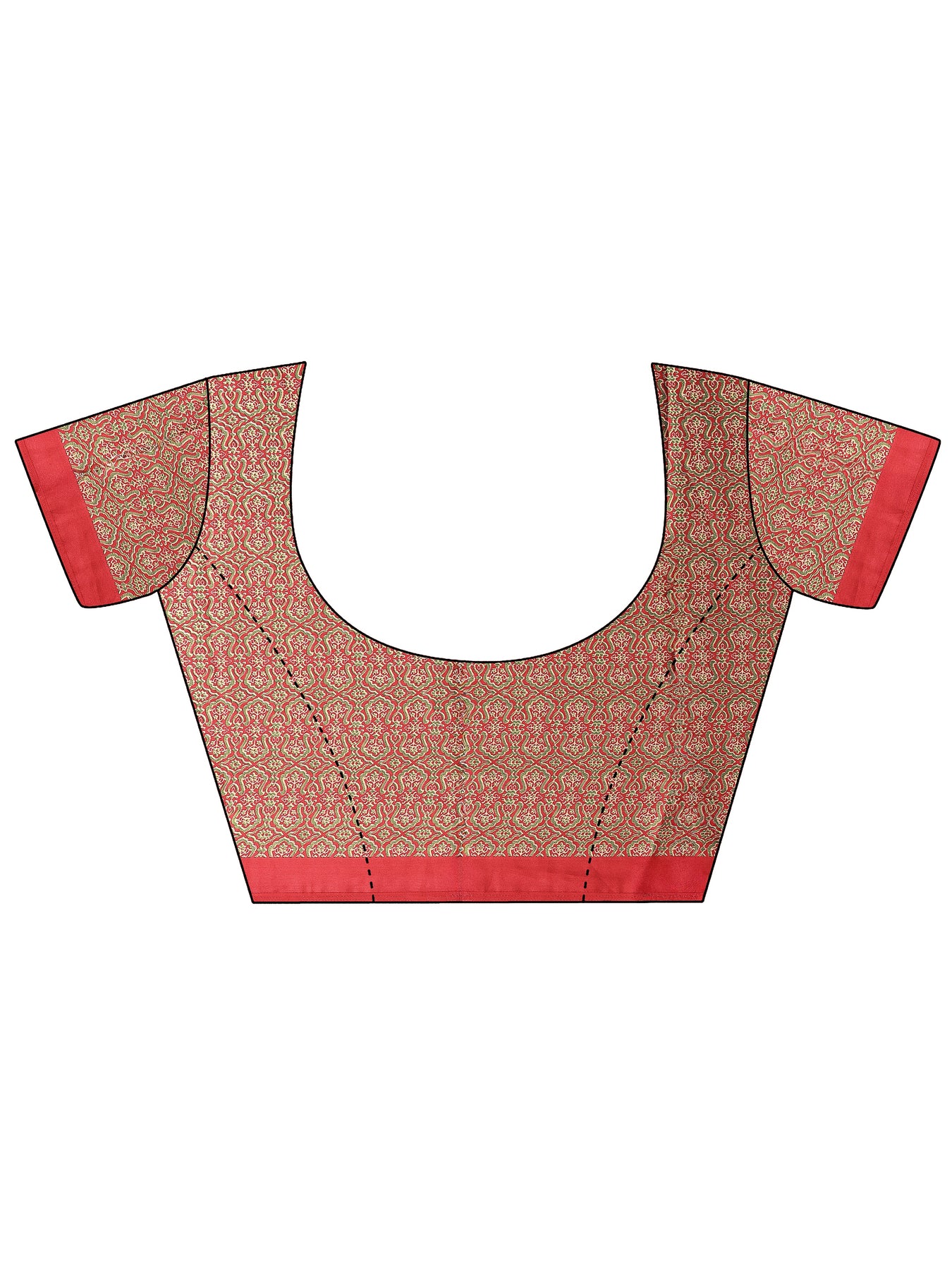 Red Printed Satin Saree With Unstitched Blouse Piece